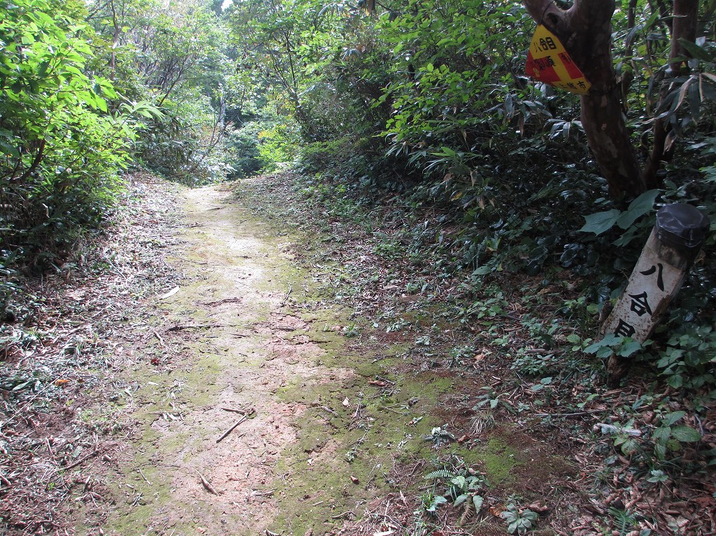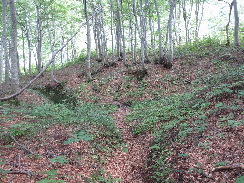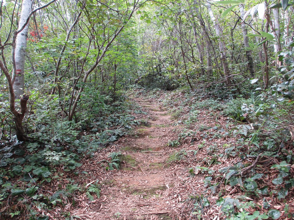 序盤は木々に囲まれた緩やかな傾斜の道を登ります。