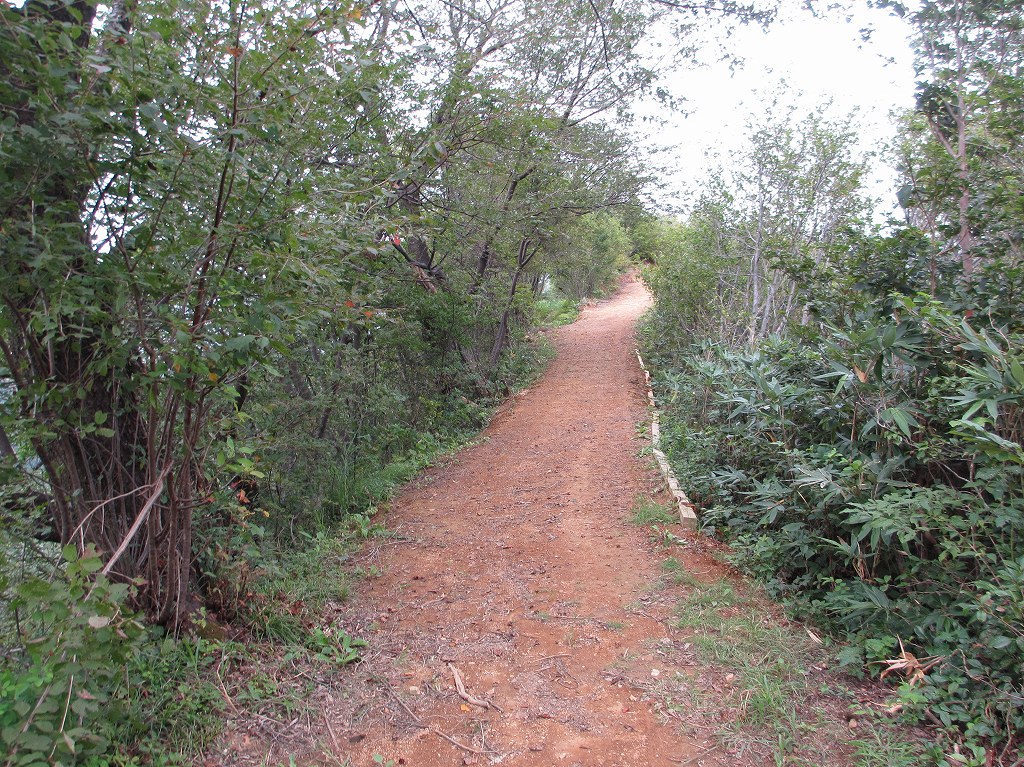 7合目までは登りが続き、そこから先は平坦で広い道をしばらく歩くと山頂へと辿り着きます。