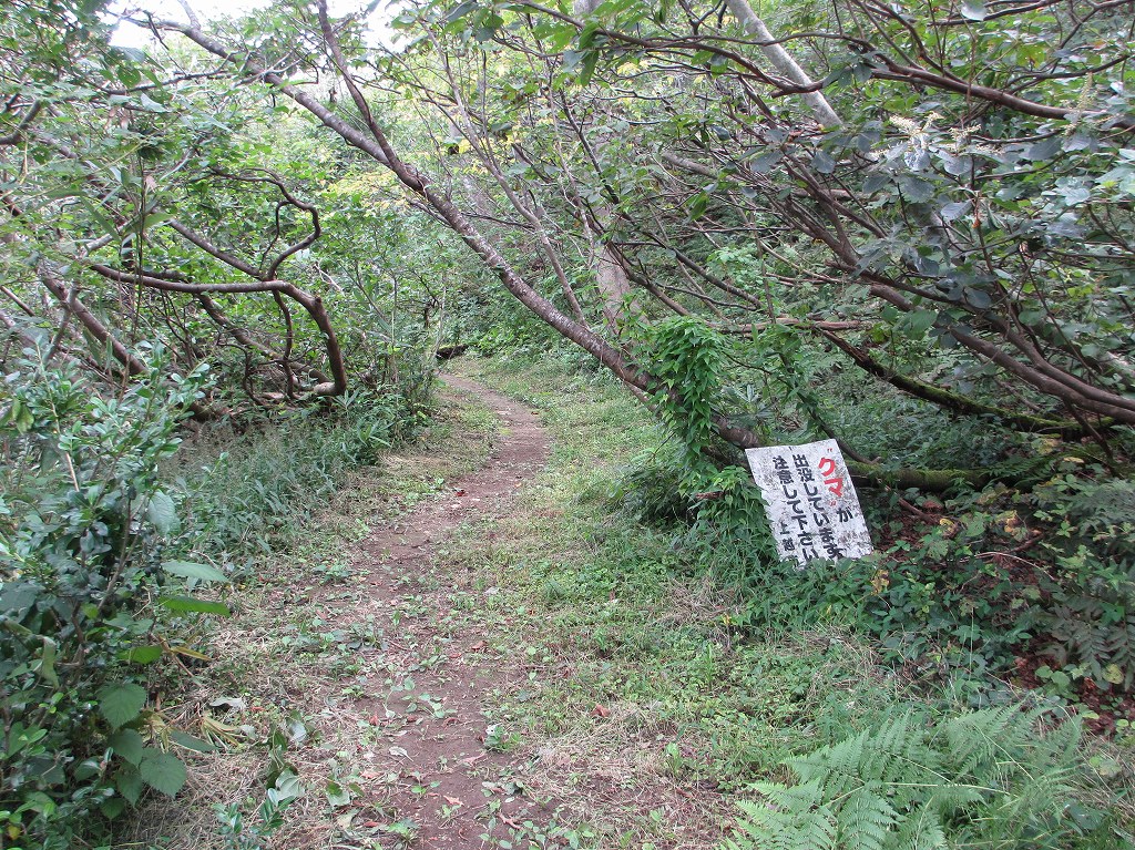 木々の中を進むと途中、山の向こうに日本海が見える箇所があります。