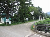 途中、桑取方面(くわどり湯ったり村)への分岐があるので、右側の「明神沢経由 キャンプ場」方面に向かいます。