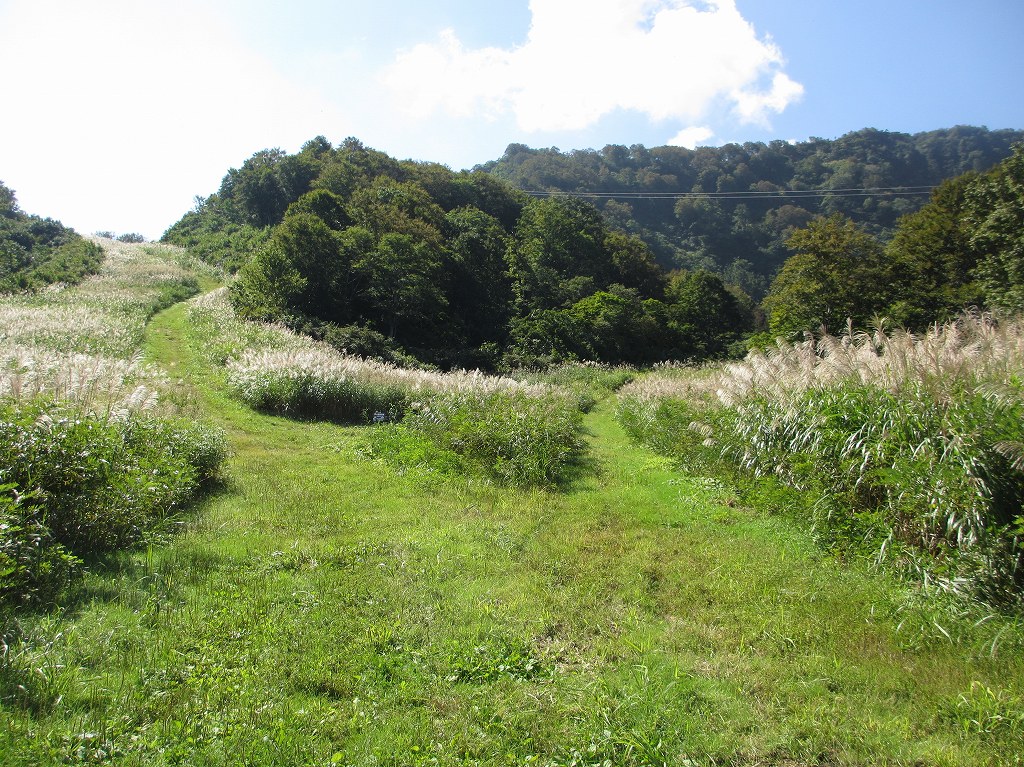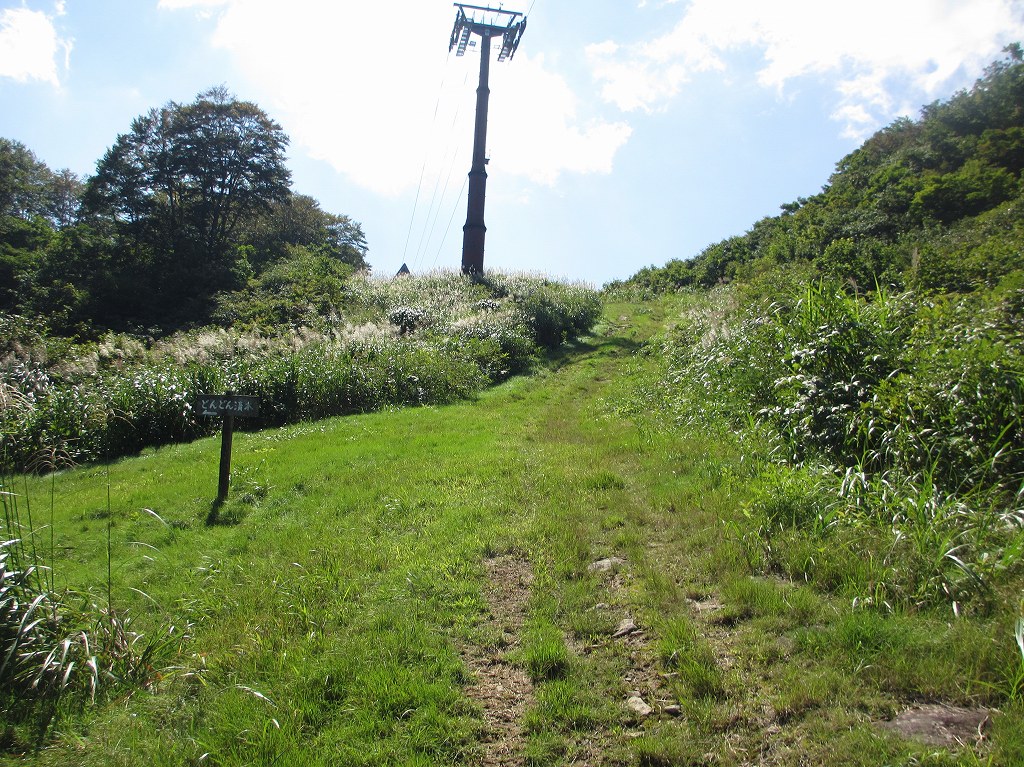 登山口からは、広くひらけたゲレンデの中を登ります。