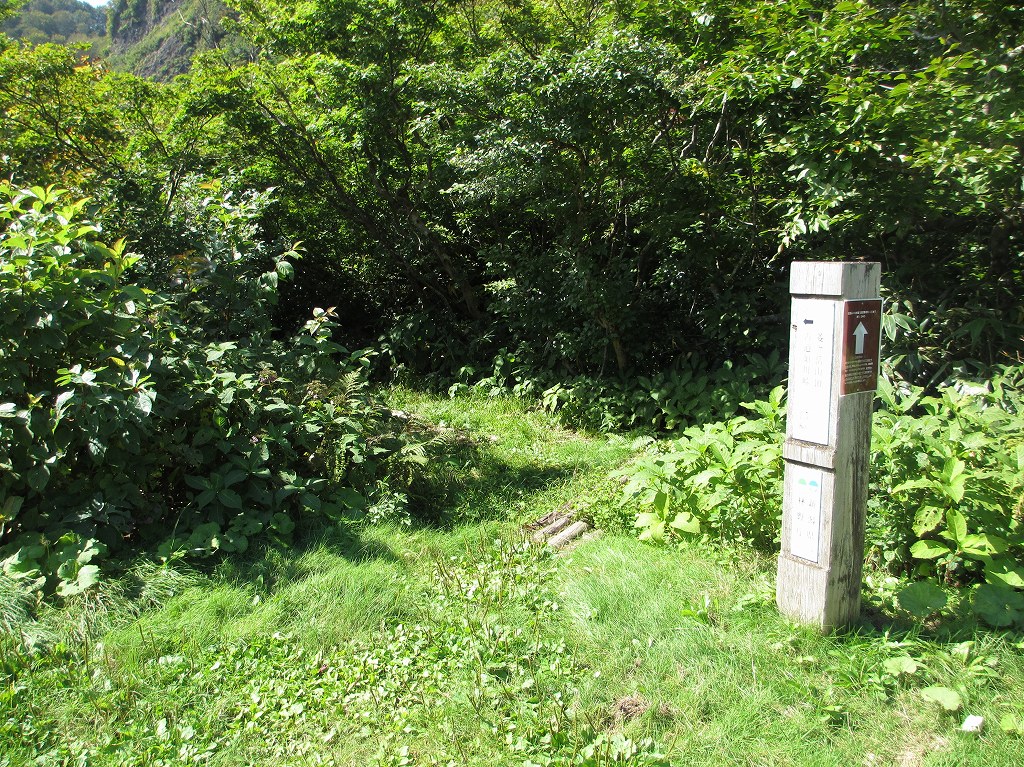 リフト降り場の先には分岐点があるので、看板の案内通りに左へ行きます。