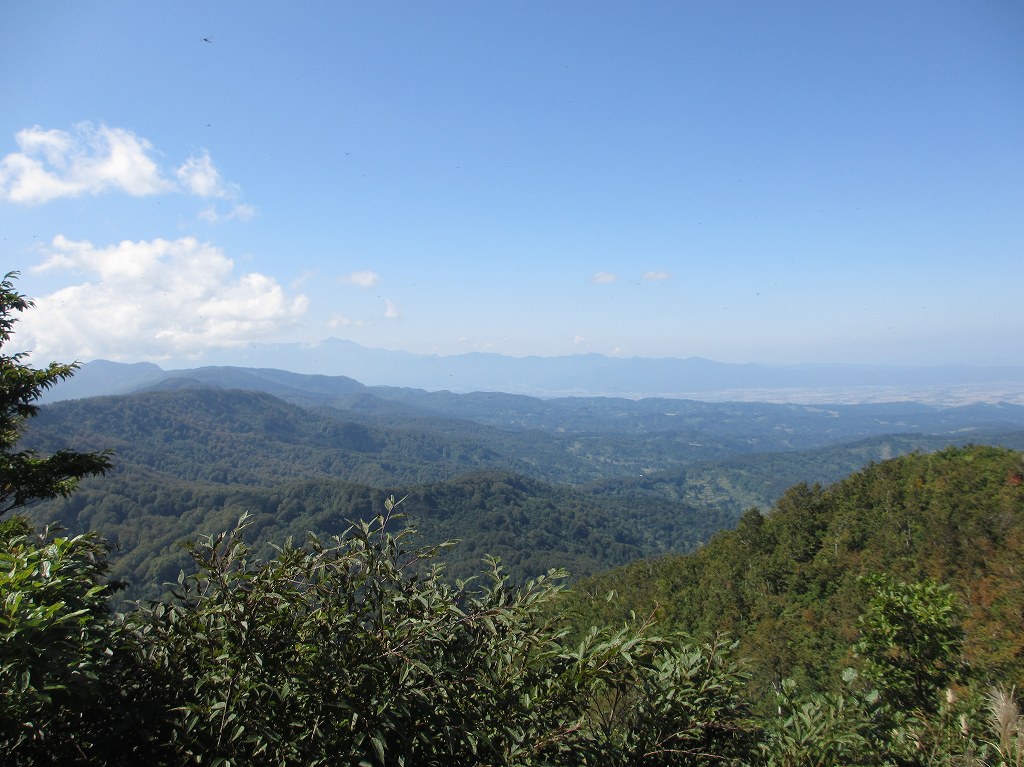 少し登るとリフトの降り場が右手に見え、そこから振り返るとスキー場のコースの向こうに広がる雄大な景色が見えます。