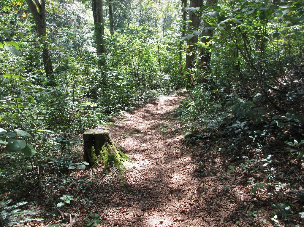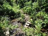 ゴンドラ山頂駅からは、木々に囲まれた登山道となり、小川を渡る箇所などもあります。