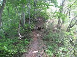 コマタ山頂 →(25分) 穴マクリ →(25分) 花ノ木平 →(20分) 藤沢の間は、登り、下り、平坦な道が繰り返されます。