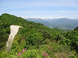 穴マクリ展望では二王子岳、遠くに広がる飯豊連峰の景色を見る事が出来ます。