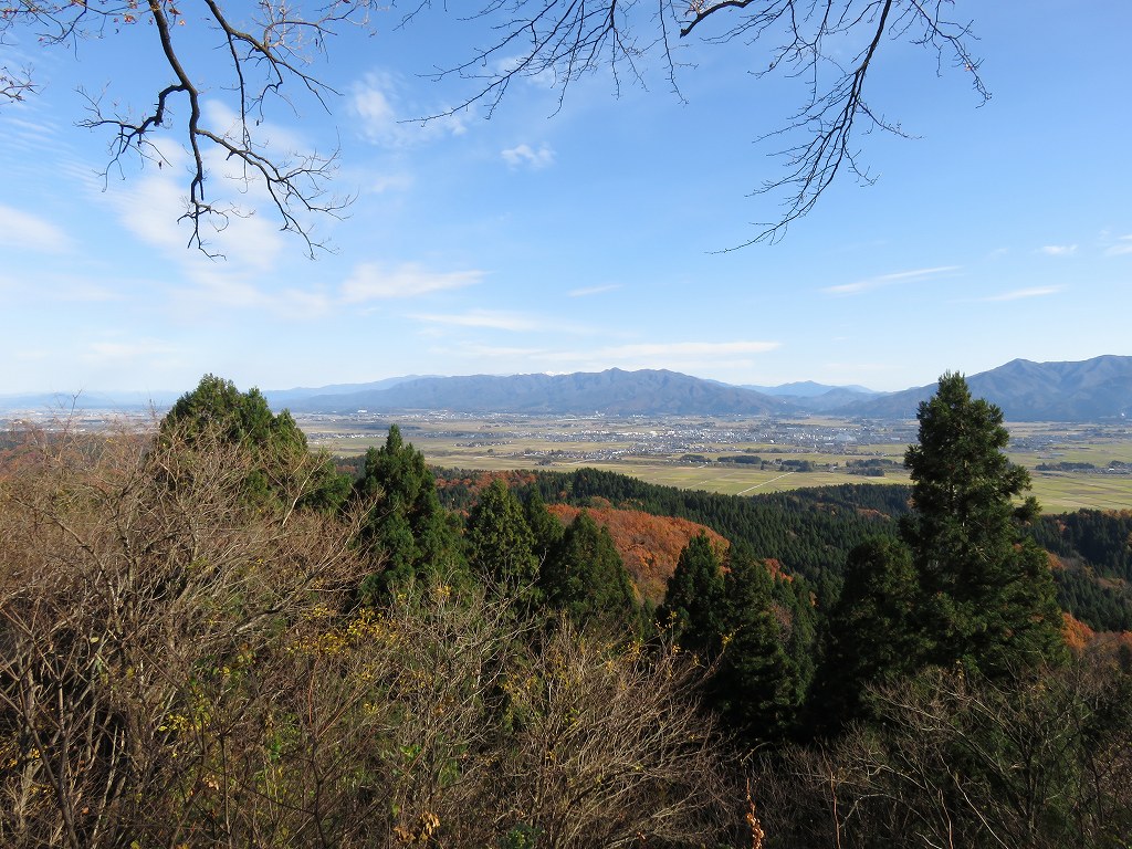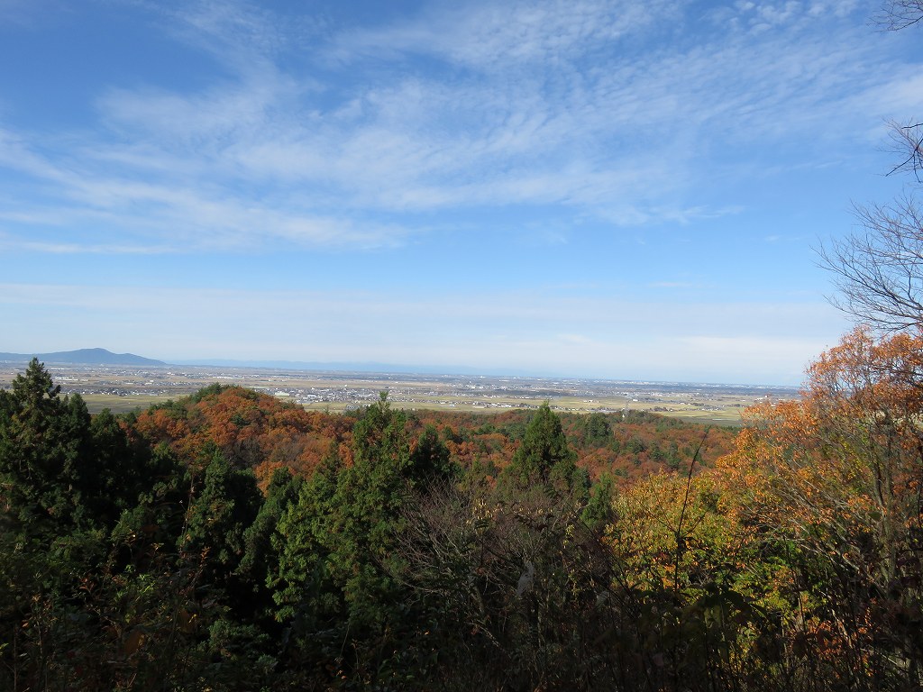 山頂からは、五泉市方面の平野が見え、奥に連なる山々など、遠く広がる景色を眺める事が出来ます。