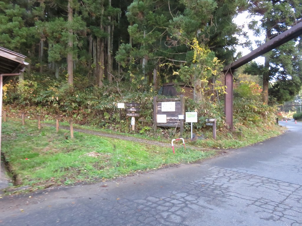 古津駅、矢代田駅方面から金津峠を五泉方面に走り、左手に石油の世界館があるところで右折しすぐの左側に登山口があります。