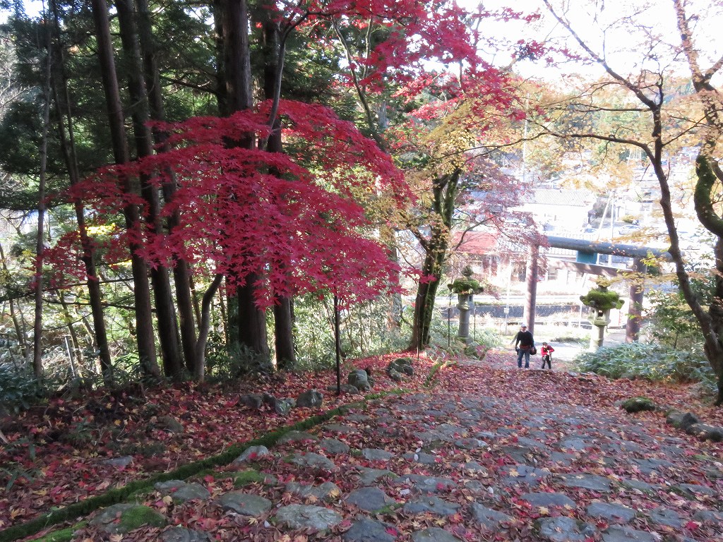 緩やかな下りをしばらく行くと、堀出神社の裏手にたどり着きます。