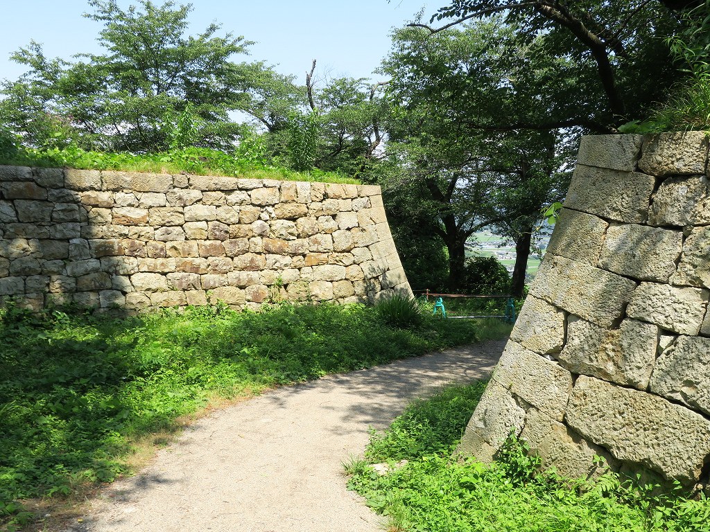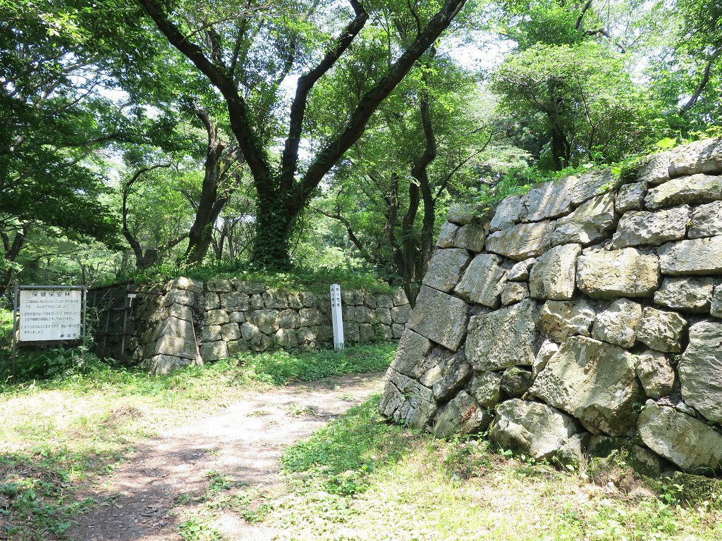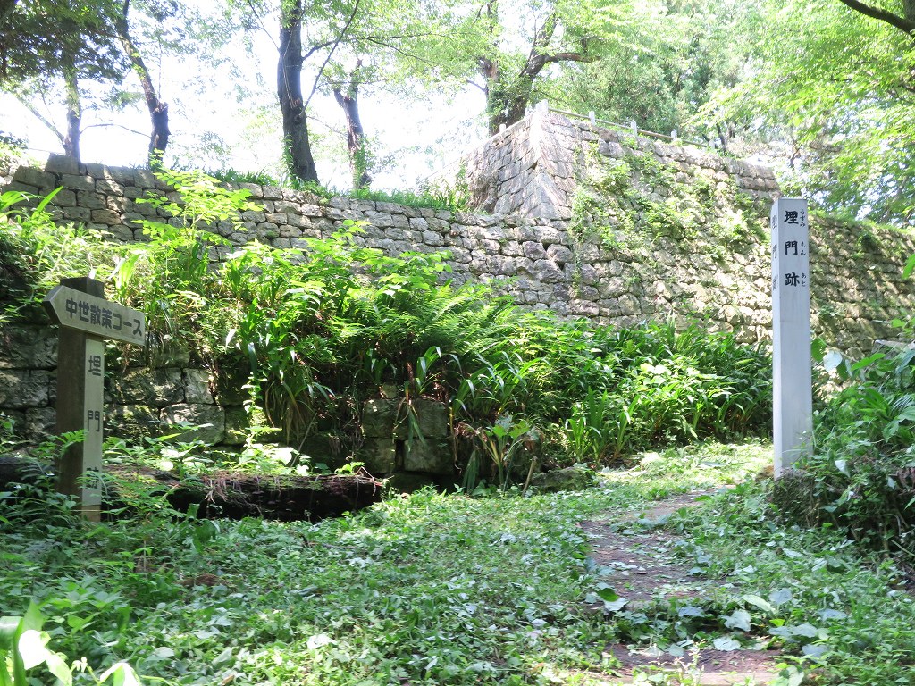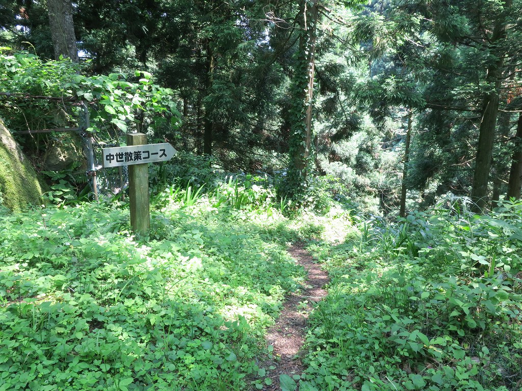 七曲り道を登り終え、石垣の間を通り、右に行くとそのまま山頂に辿りつきますが、今回は、まっすぐに進む中世遺構散策コースへと行きます。