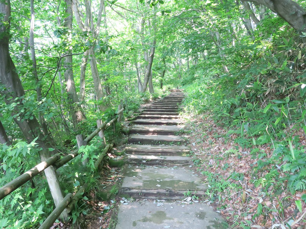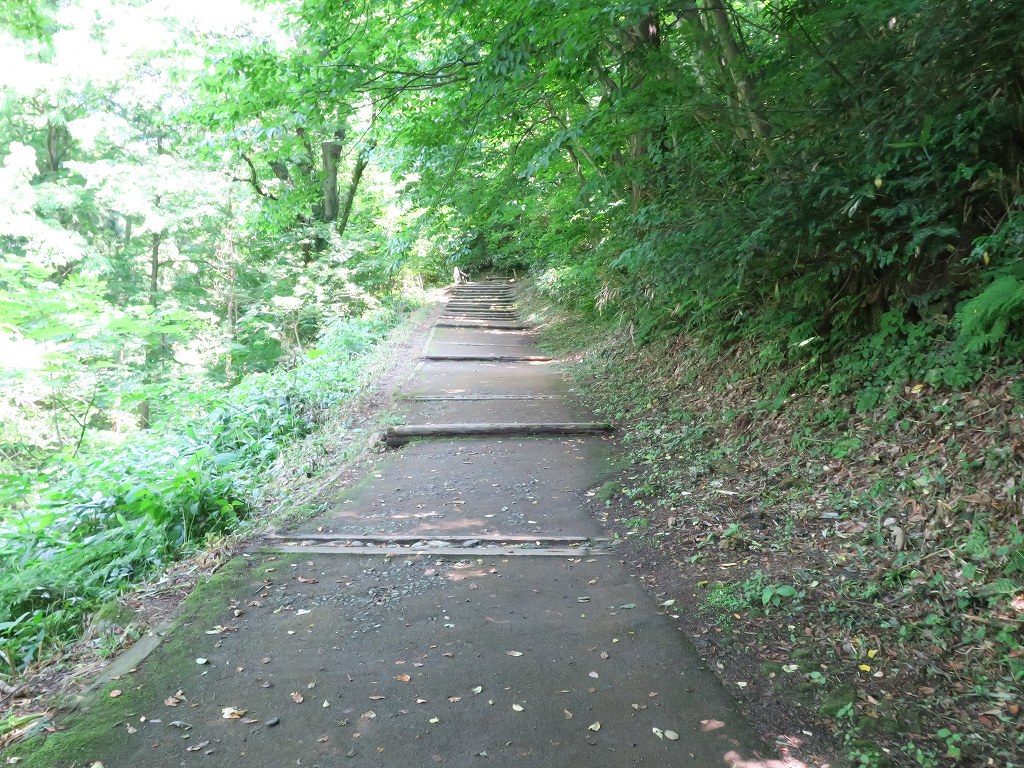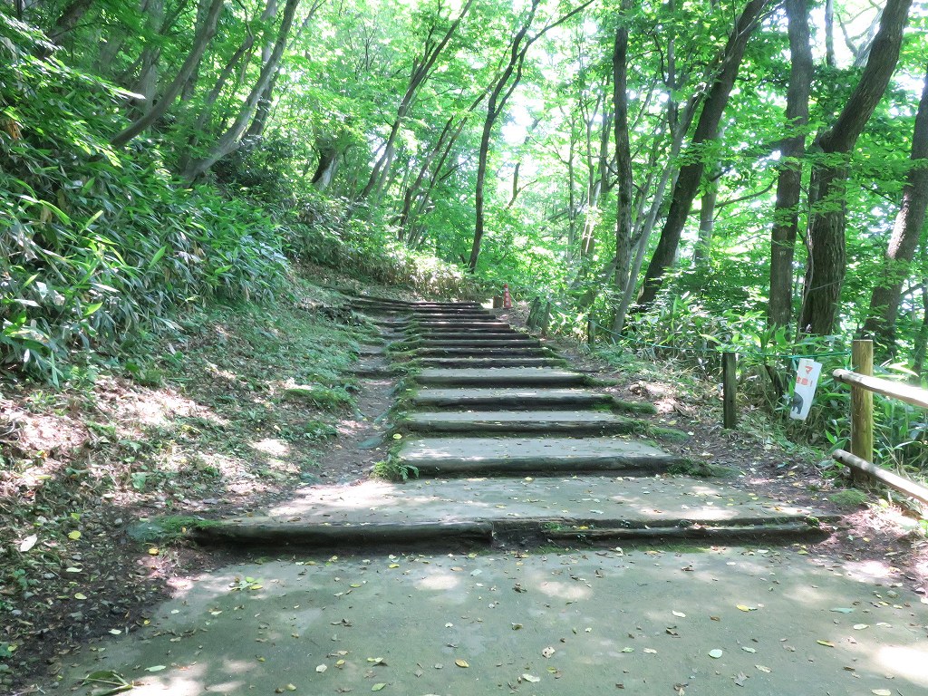 登山道は、七曲り道と呼ばれ、整備され歩きやすい歩道となっており、直線とカーブの繰り返しが続きます。