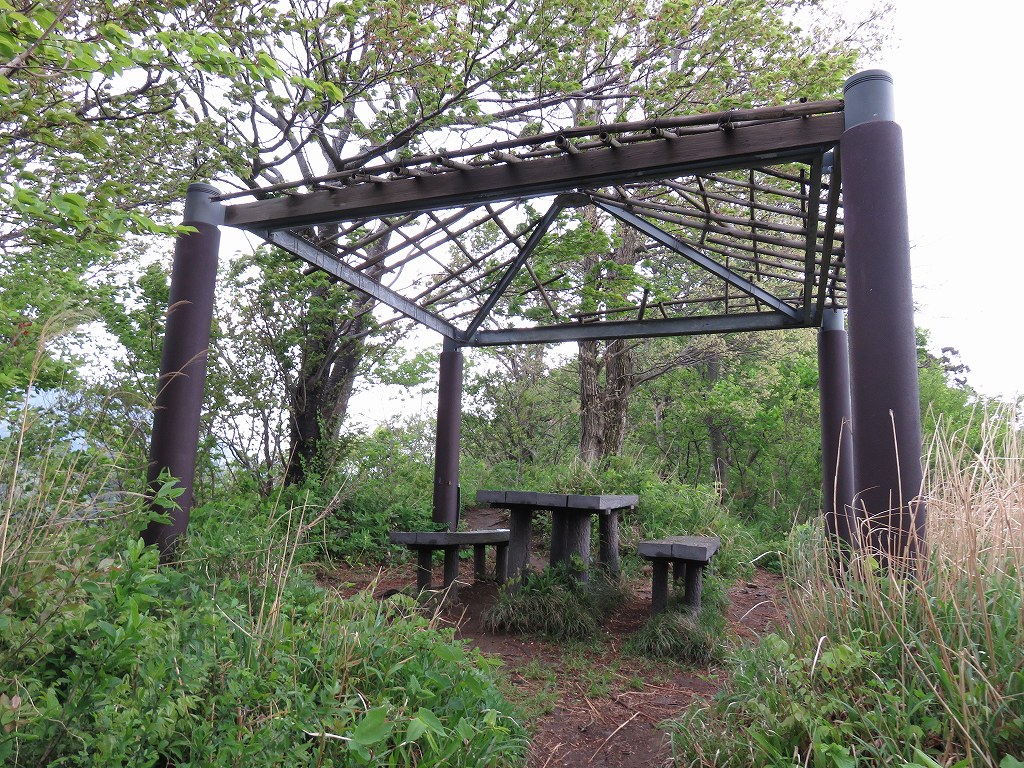 登山道は、木々に囲まれている場所が多いですが、一部新潟市中心部方面が開けている箇所があり、ベンチなどもあるので、休憩ポイントとすると良いでしょう。