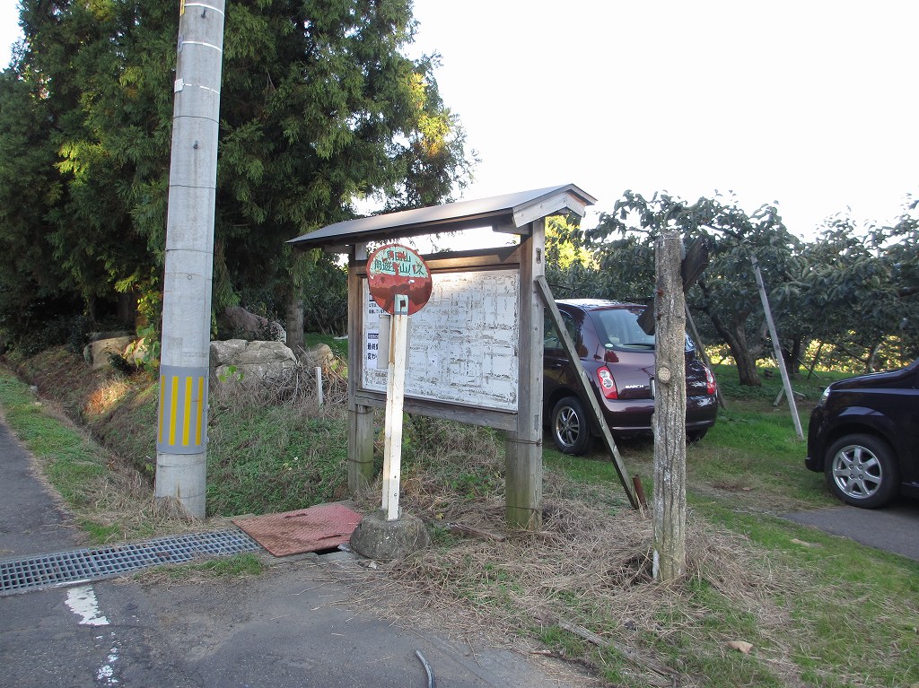稲島コースから弥彦方面に行くと、左手に駐車場、右手に「五りん石」という標識があり、駐車場に車を停め登る事も可能ですが、駐車場を越え少し行くと左側にバス亭があり、そこを右折すると柿の畑の間を走りしばらく登ると登山口と駐車場があります。