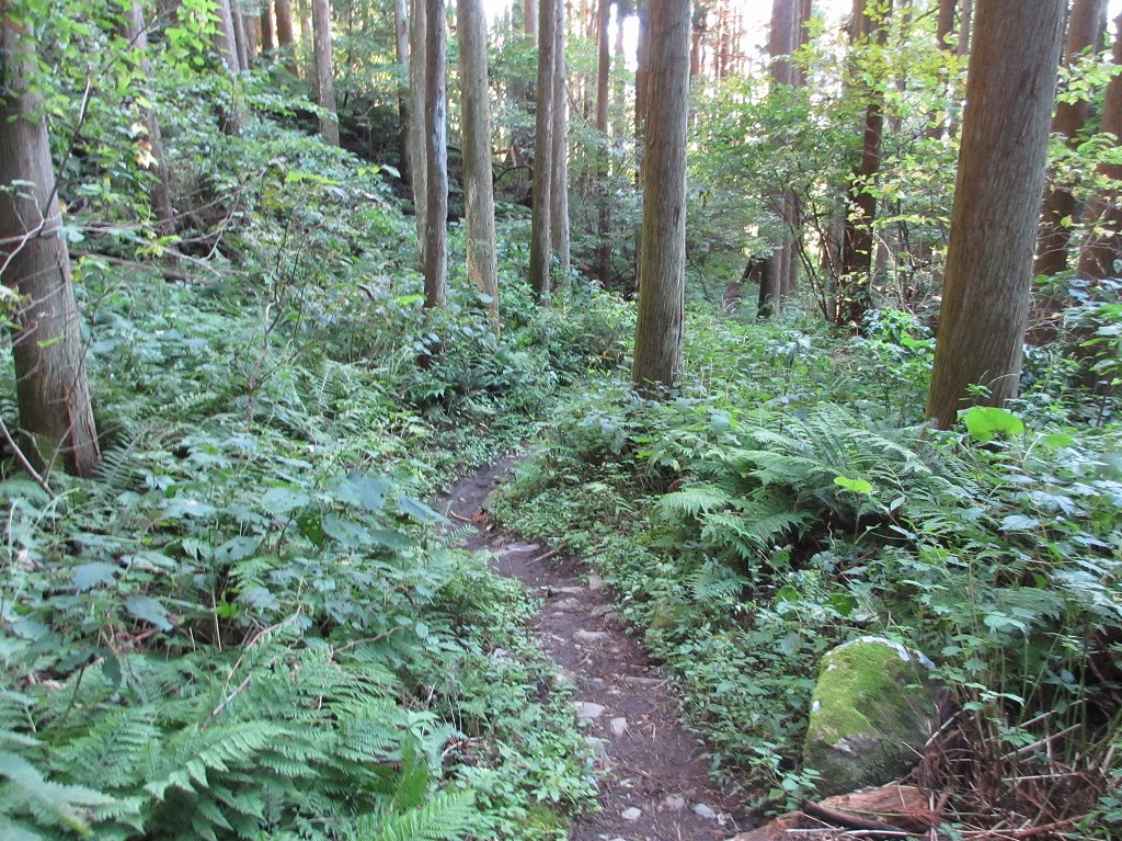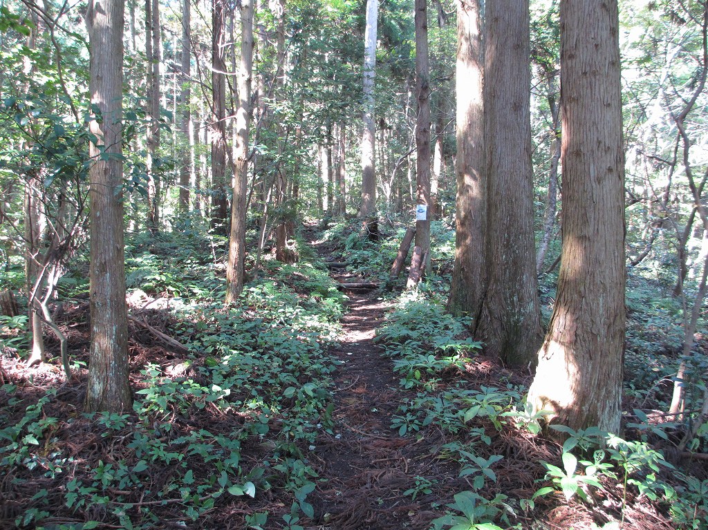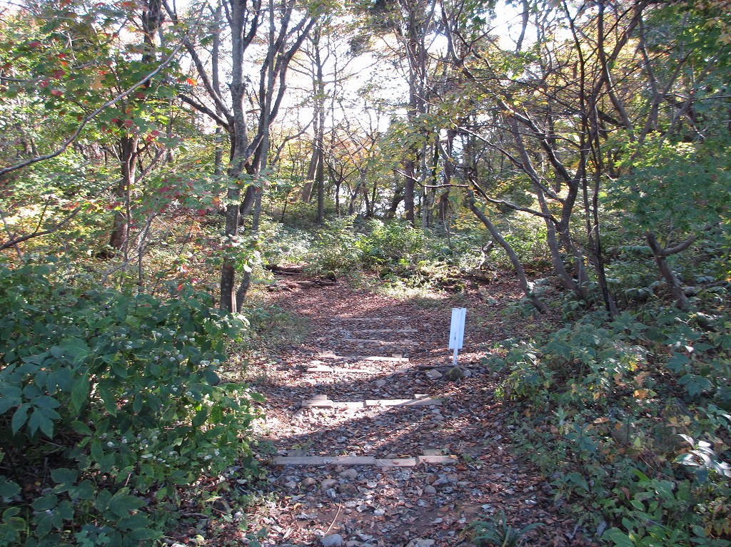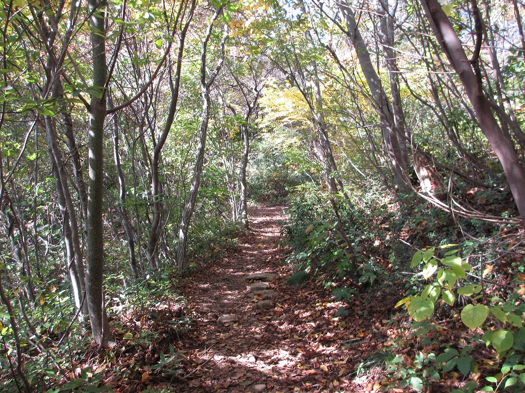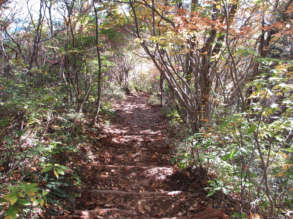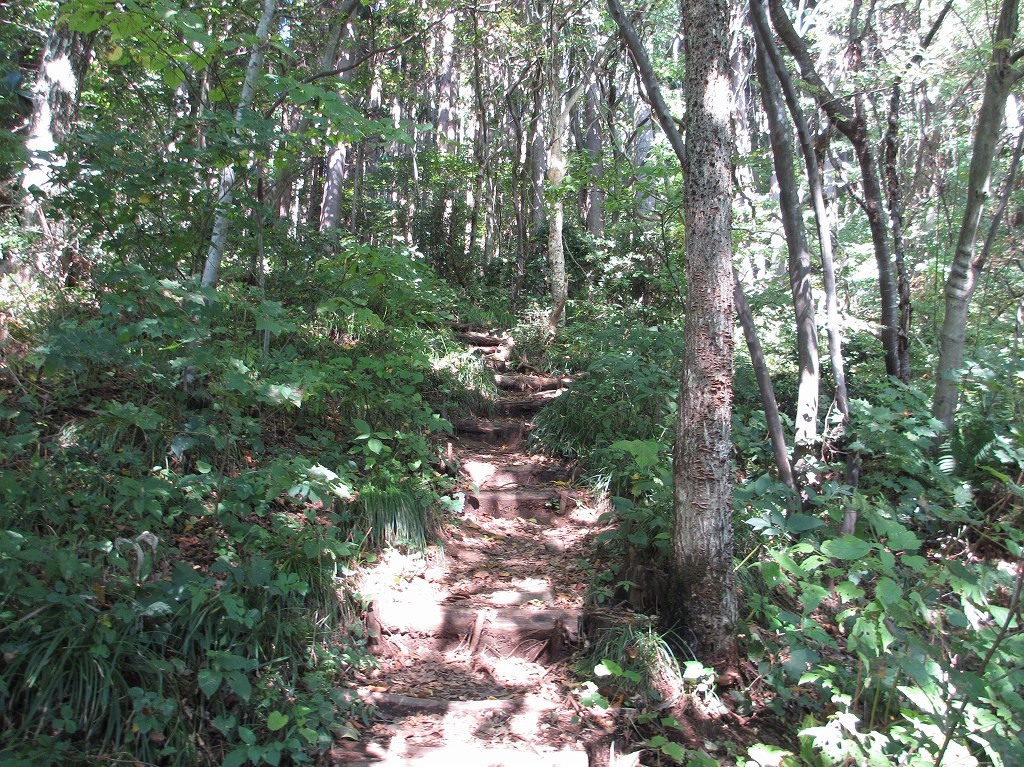 序盤は木々に囲まれた緩やかな登りが続き、一旦開けた場所に出た後は、再び木々に囲まれ、少しずつ急になっていきます。