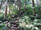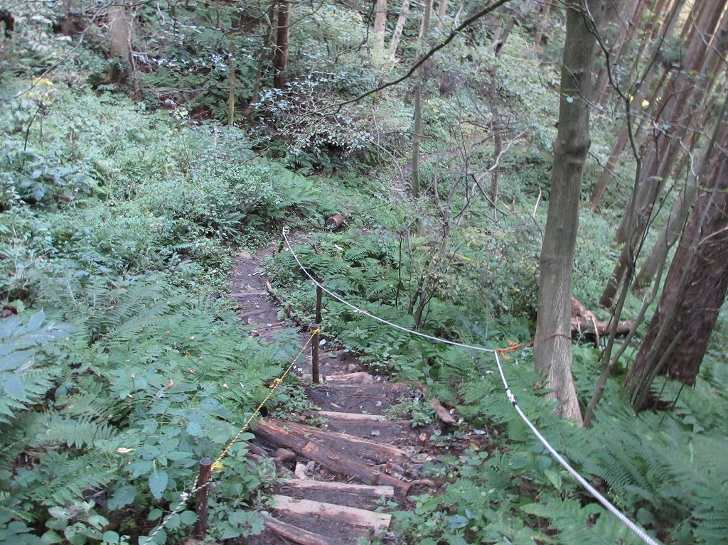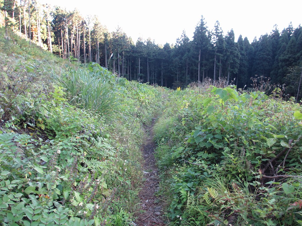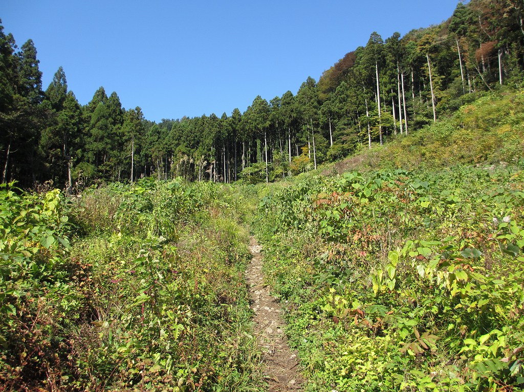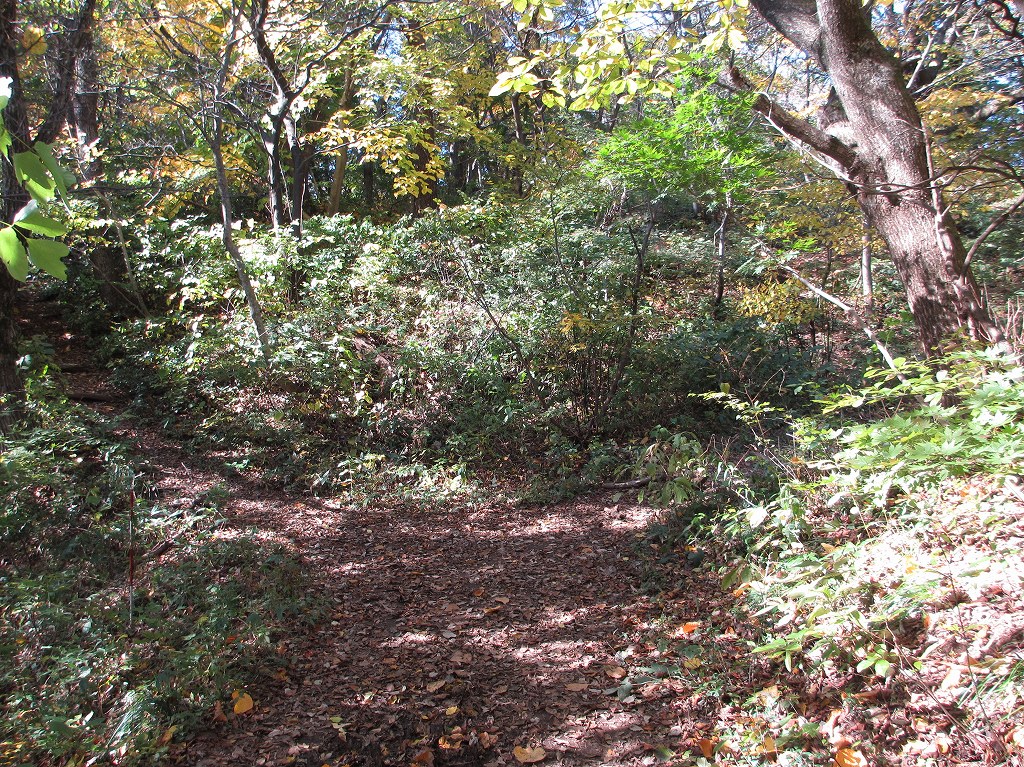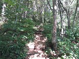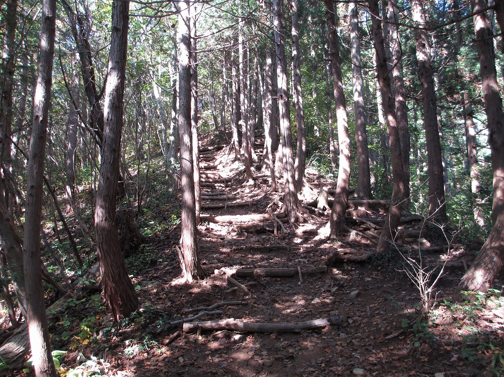 序盤は木々に囲まれた緩やかな登りが続き、一旦開けた場所に出た後は、再び木々に囲まれ、少しずつ急になっていきます。
