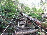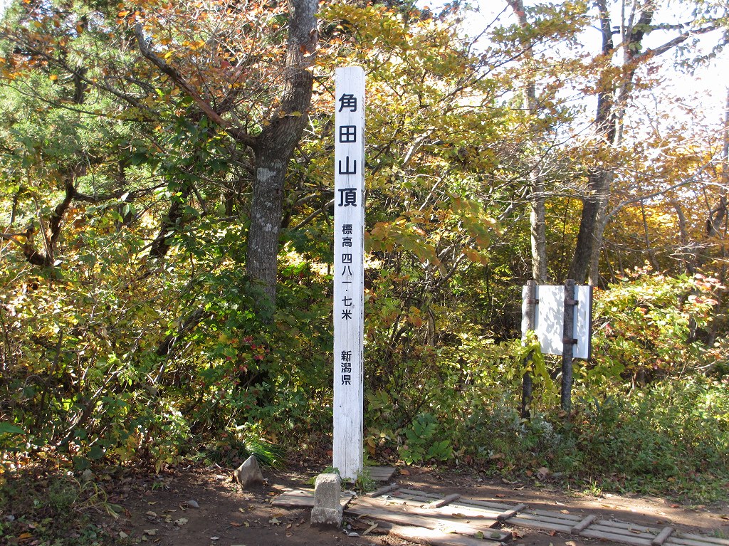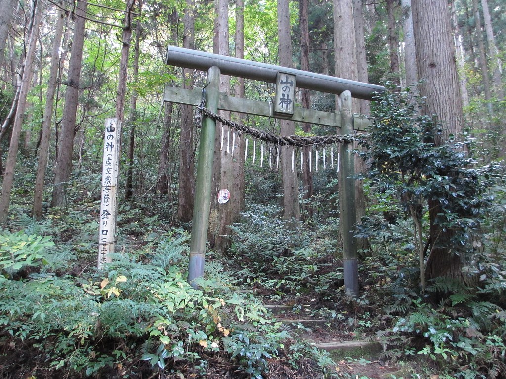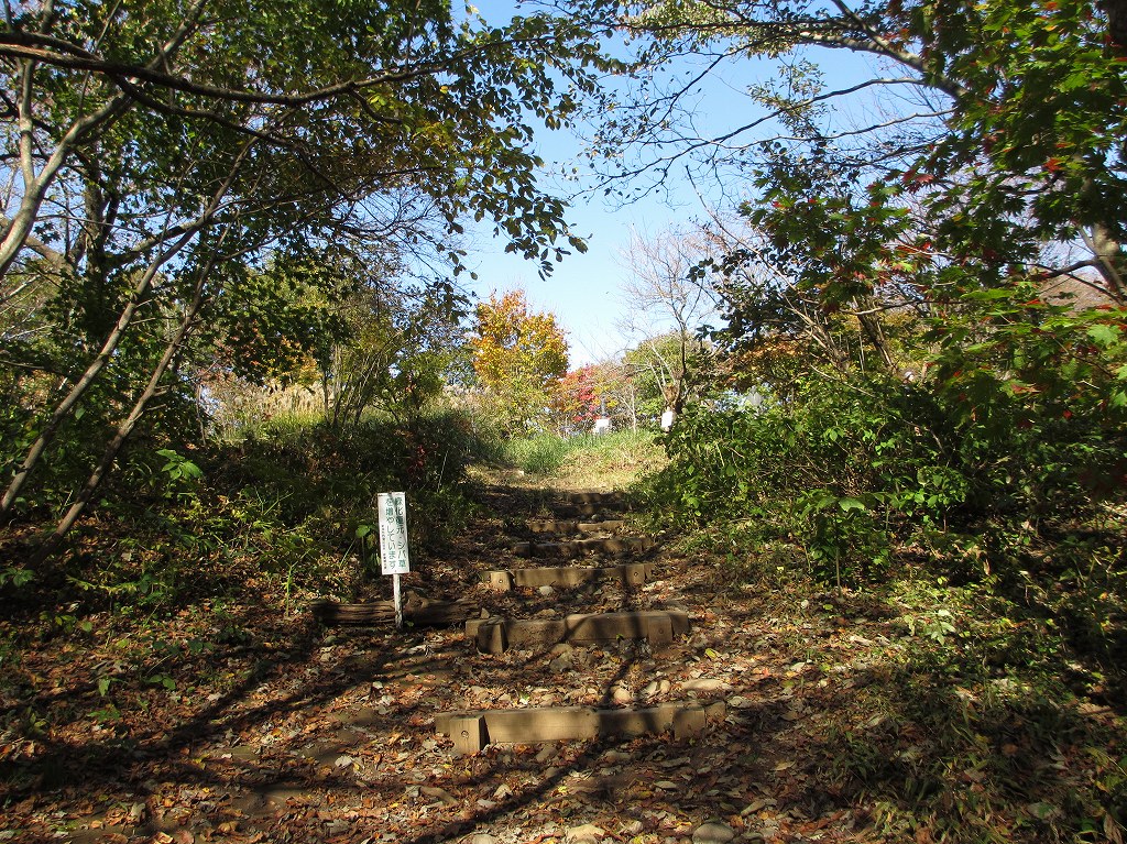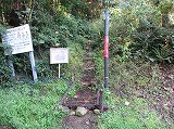 合流点からも階段が続いた後、平坦な道となり、直進と右の分岐点があらわれ、右に行くとすぐに山頂に辿り着きます。