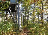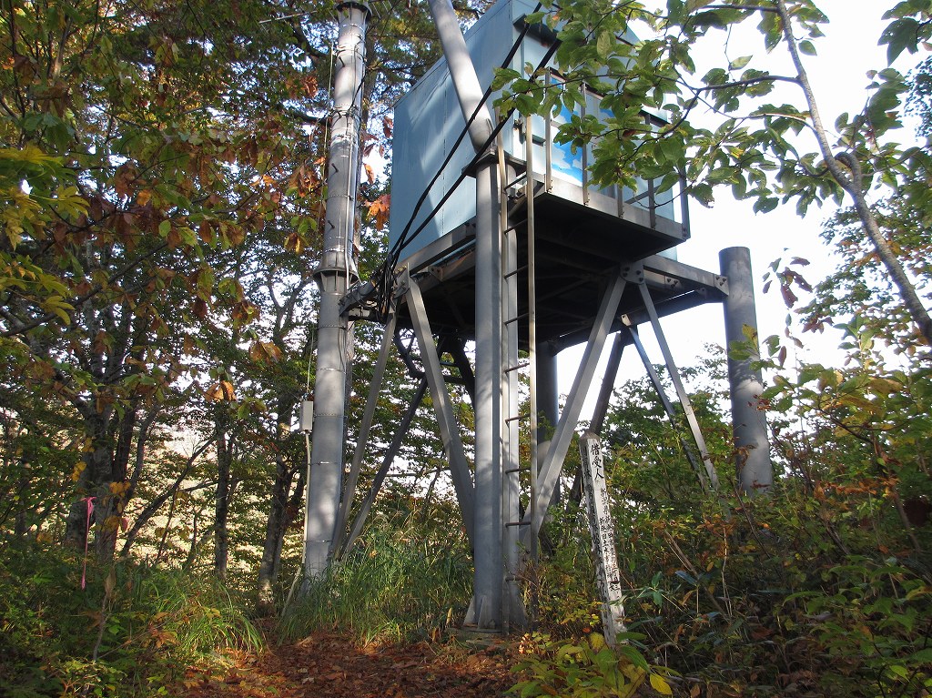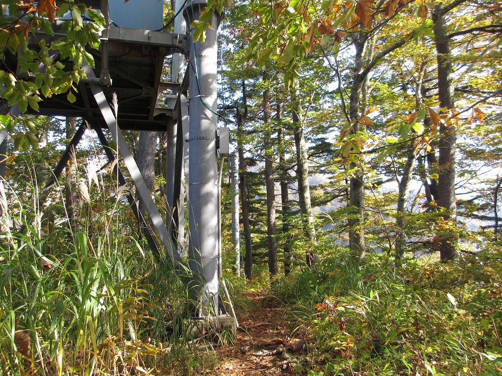 登山口からは、しばらく階段が続き、少し登ると電波塔があります。