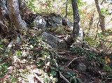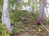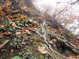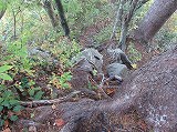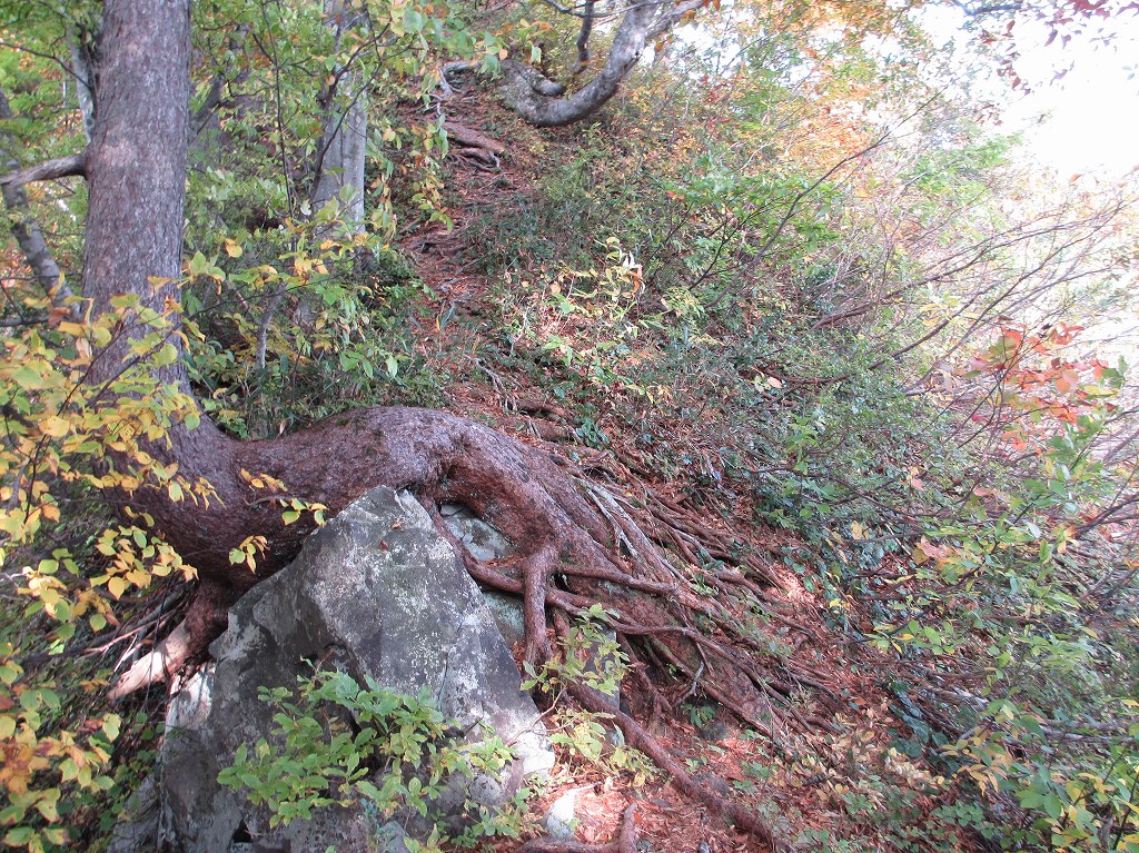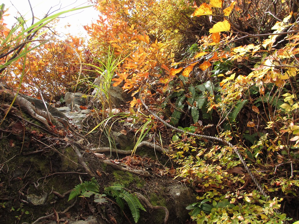 しばらくは、木の根が多い道が続き、その後は、急な傾斜でロープがある箇所などもあります。