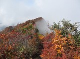 北の峰から細い道を進み、急な斜面をロープを使い登ると、山頂へと辿りつきます。