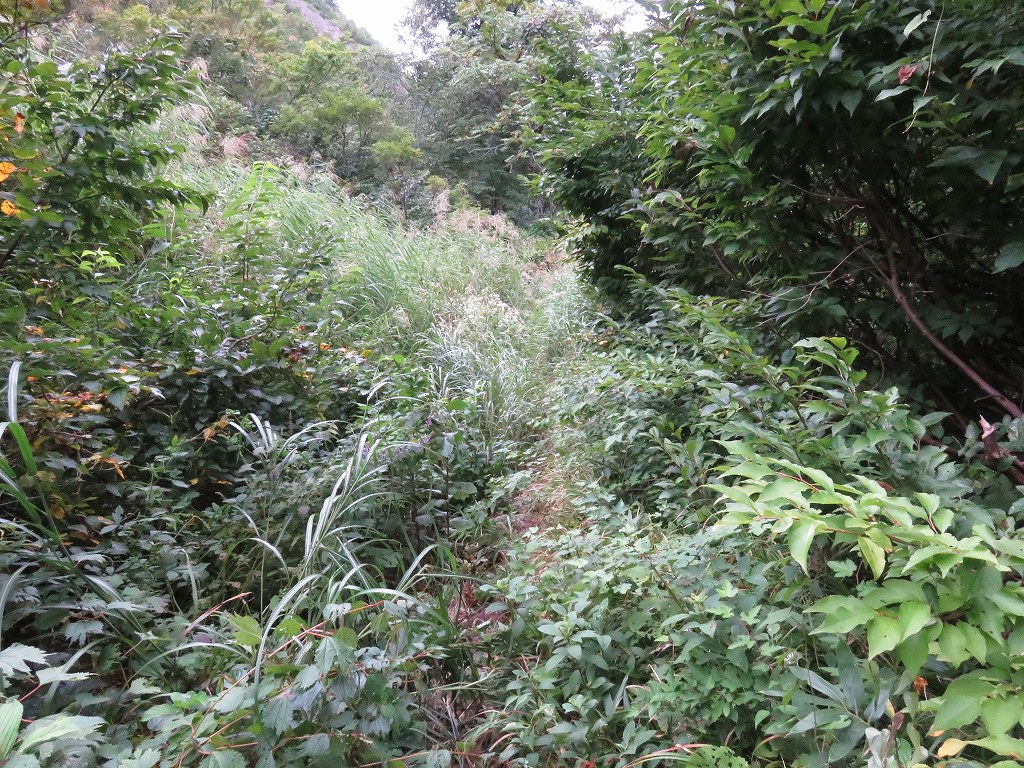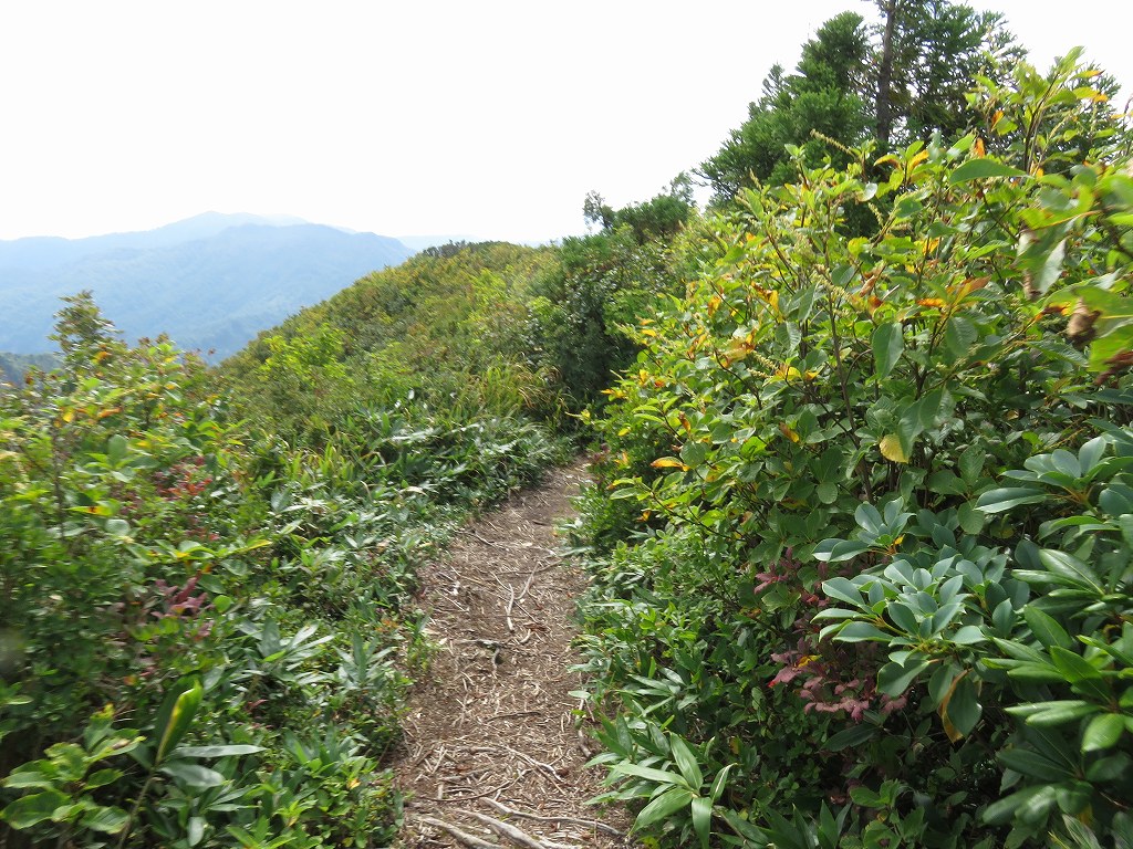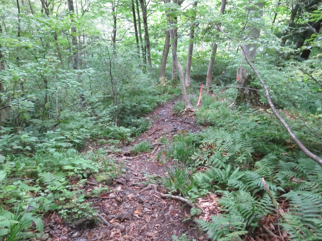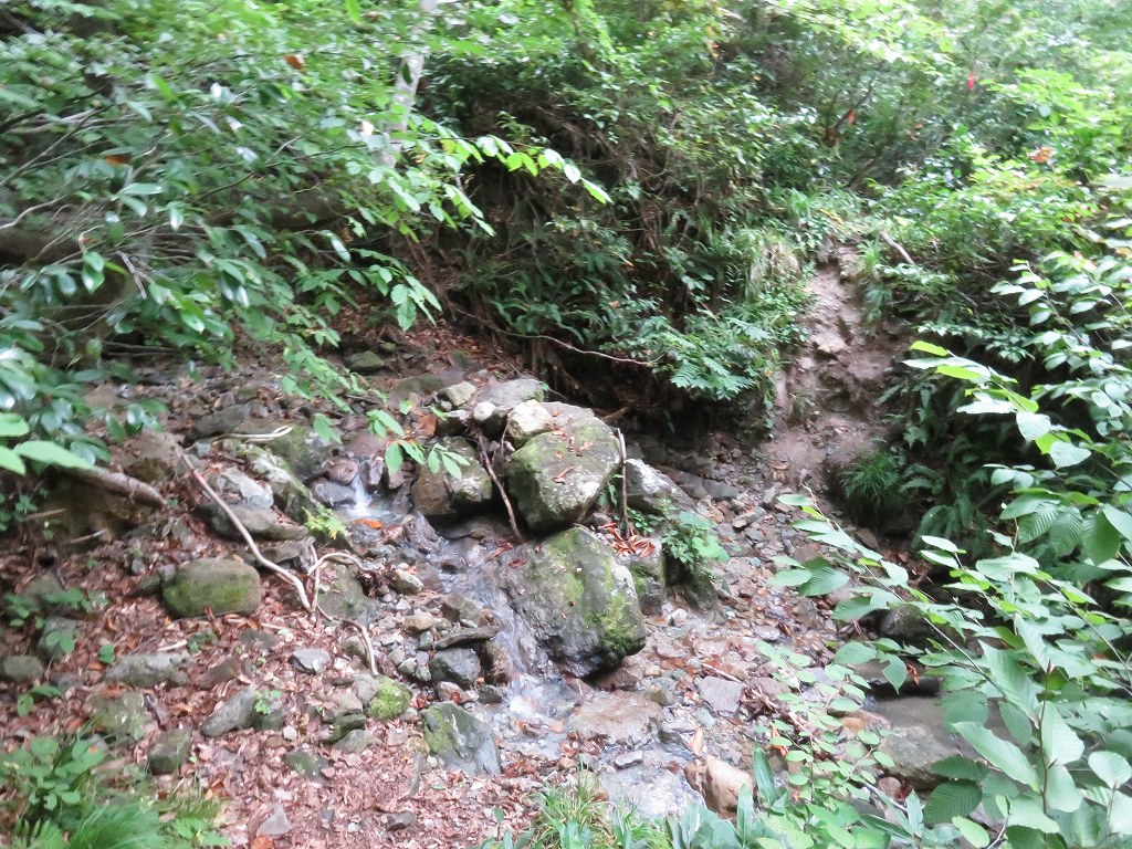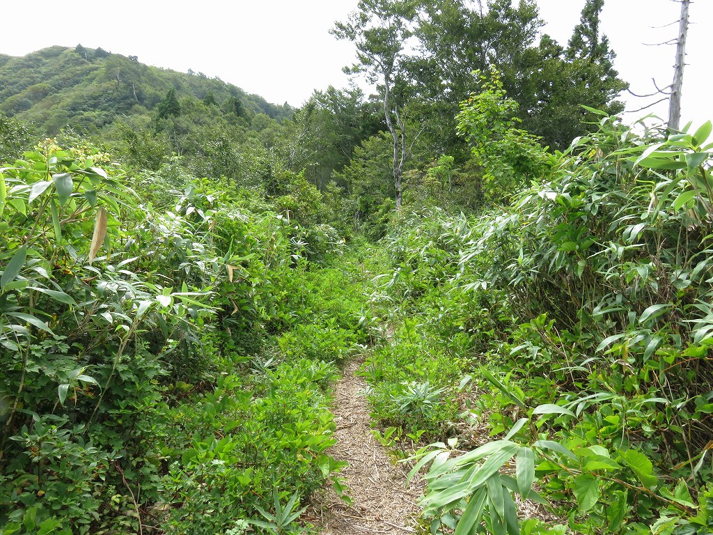 序盤は草に囲まれた細い道や沢沿いの緩やかな登りとなっており、時折沢を越えるところなどもあります。