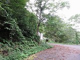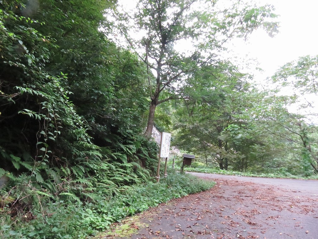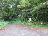 しばらく走ると登山道と書かれた案内板があるので、そこを左折し、案内に従い山道を走ると登山口へたどり着きます。