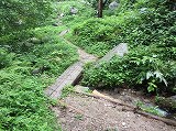 途中見晴らしの良い休憩所があり、そこからしばらく下ると、小さな橋が二つある沢を越えると最初の分岐点へと辿り着きます。