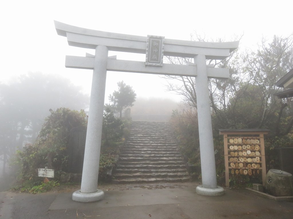 少し登ると、弥彦神社方面からの登山道、ロープウェイの山頂駅周辺の道と合流します。