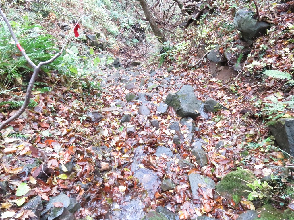 下山時は、落ち葉が多い季節、雨天時などは、岩場など滑りやすい箇所も多いので足元には注意を払う必要があります。