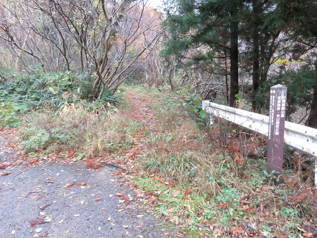 「佐渡弥彦米山国定公園 登山道」と書かれた看板のところを右に登り、小さなダムを越えると少し険しい道へと変化していきます。