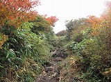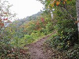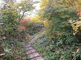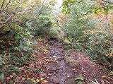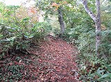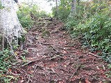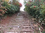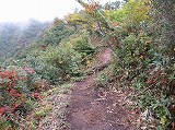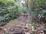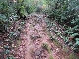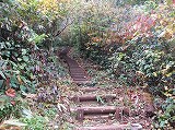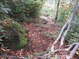 登りでは大きく迂回してきたのに対し、下山路は距離が短くなるかわりに、かなり急な道となります。