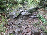 ムジナ下山口から階段、岩場、木の根などを繰り返し、90分程登ると嘉平与ポッチ(カヘヨノポッチ)につきます。