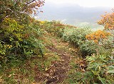 手前には右へ行く分岐路、標柱のある場所からは、左へのネズモチ平へ降りる分岐がありますが、両方直進します。