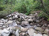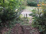 奥にはムジナ沢登山口へ向かう下山口がありますが、左手にある階段から登ります。