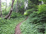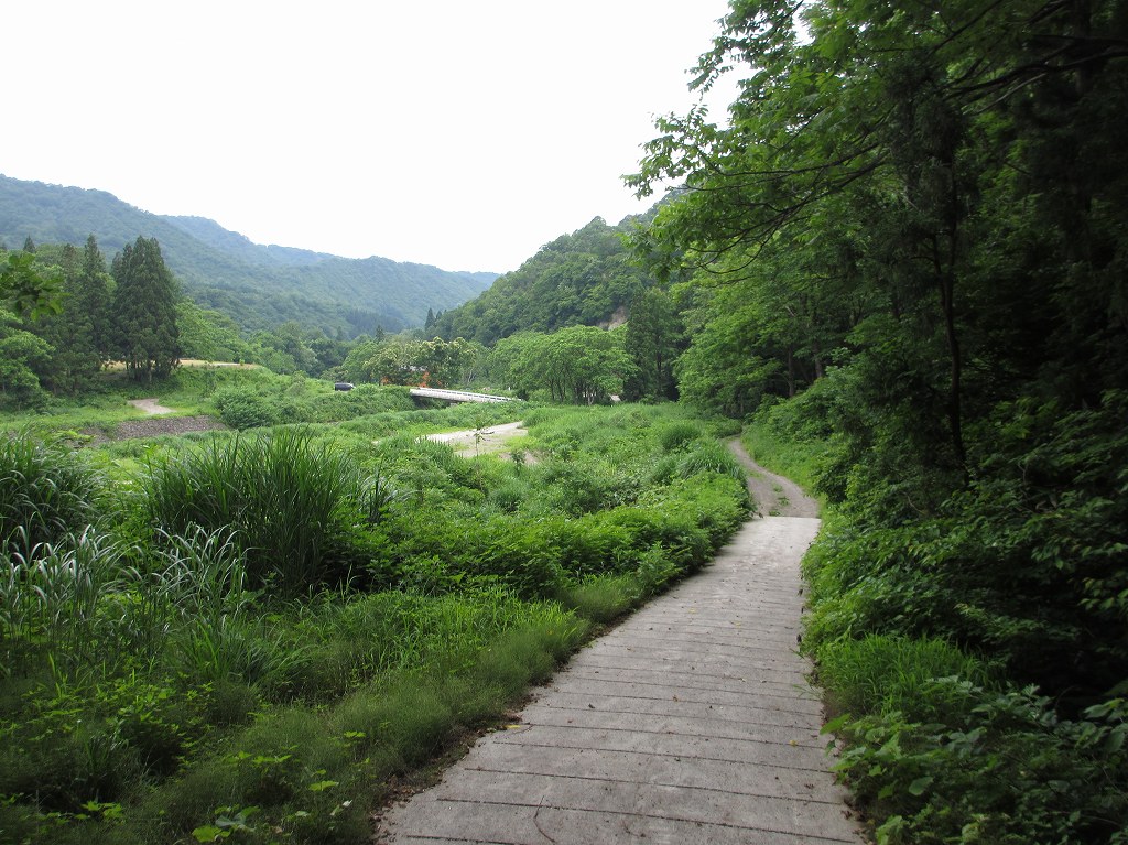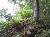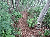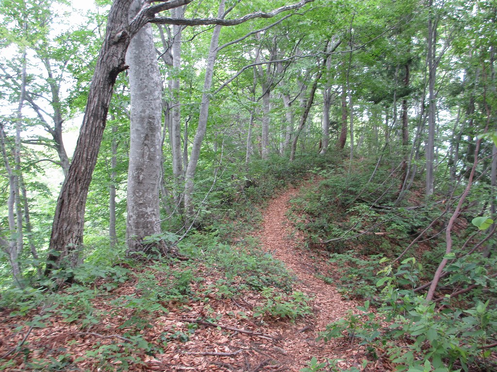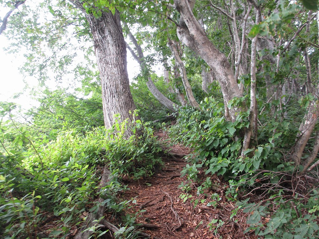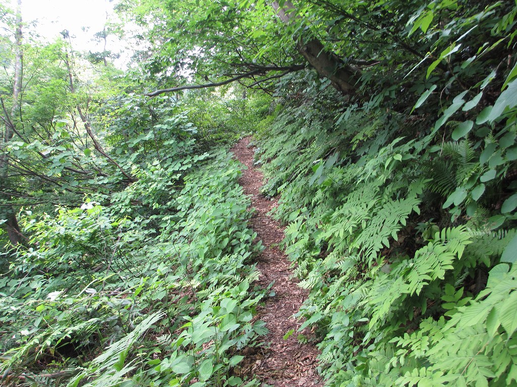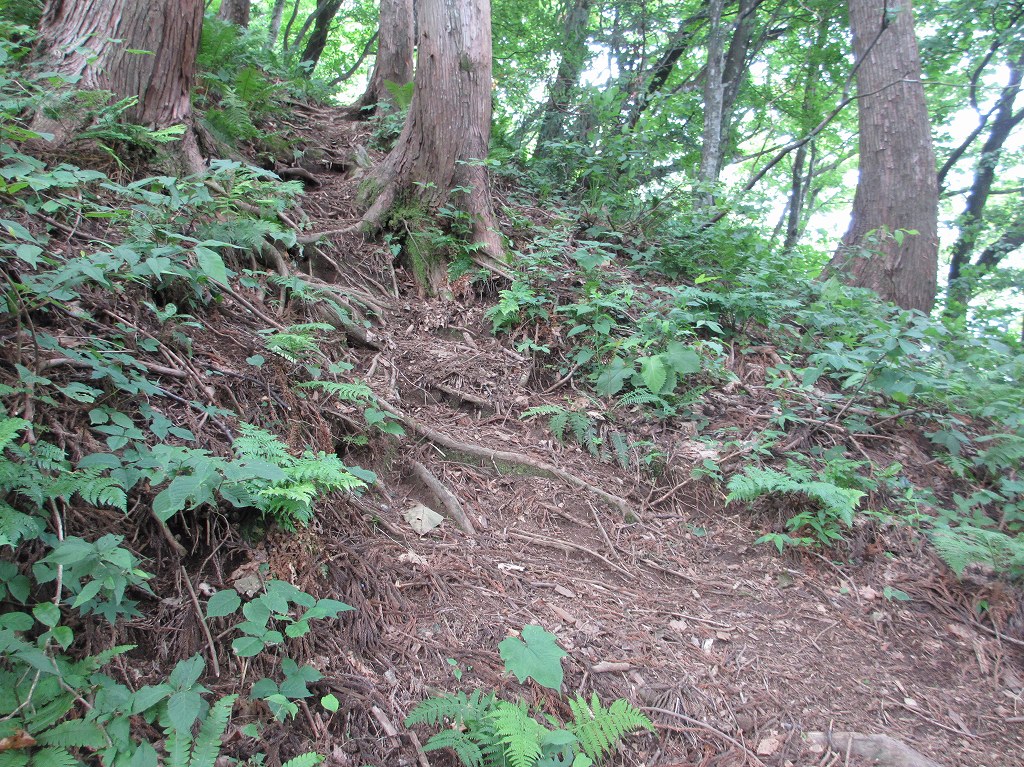 ここからしばらく登ると右側が山、左側が谷の斜面に作られた道になるので、足元に注意する様にしましょう。