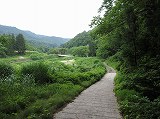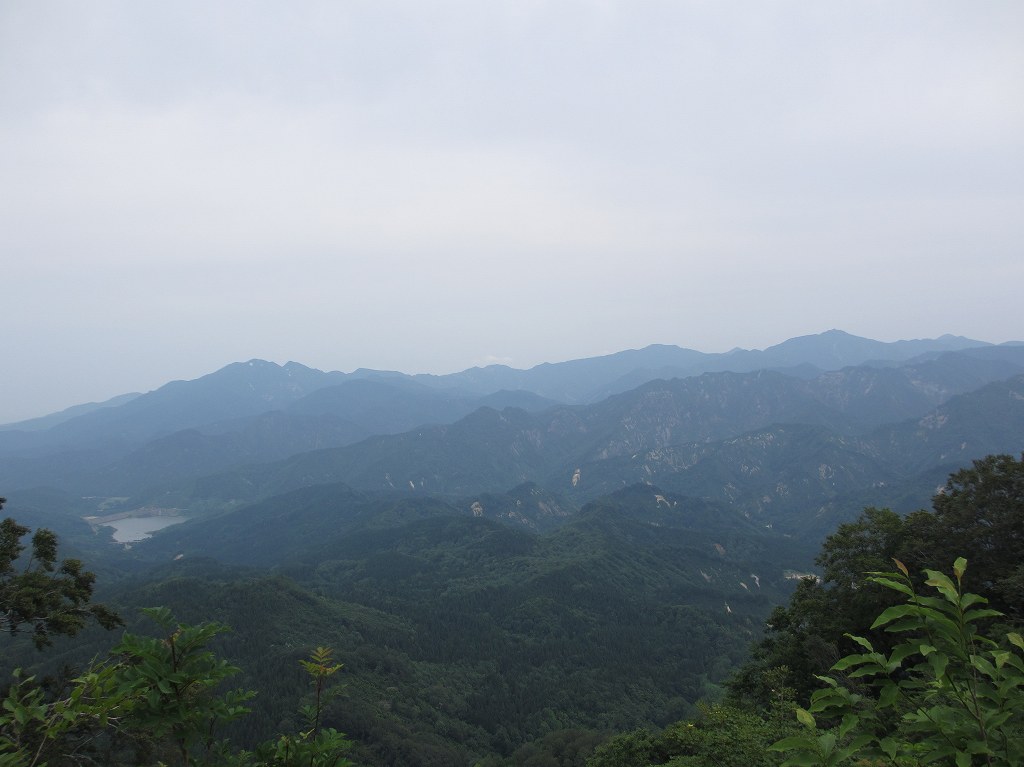 途中左側の景色が開け、雨生ヶ池、ひめさゆり湖・大谷ダム、また、遠く広がる山々が望めます。