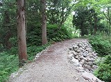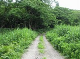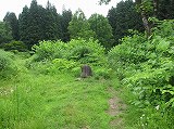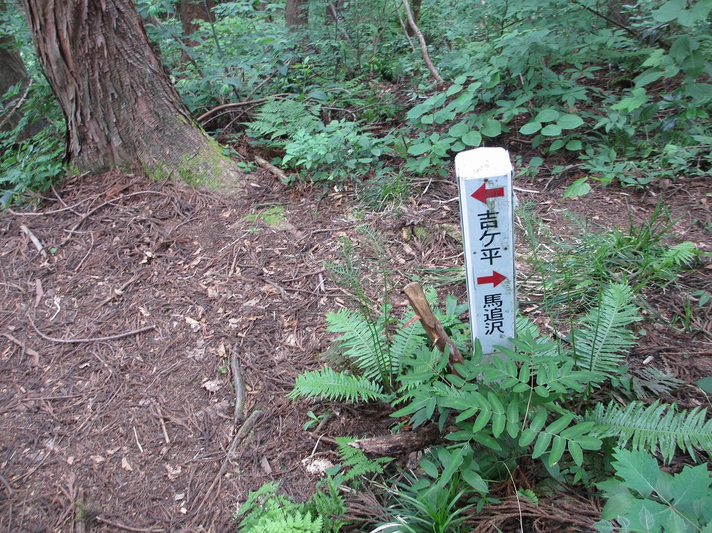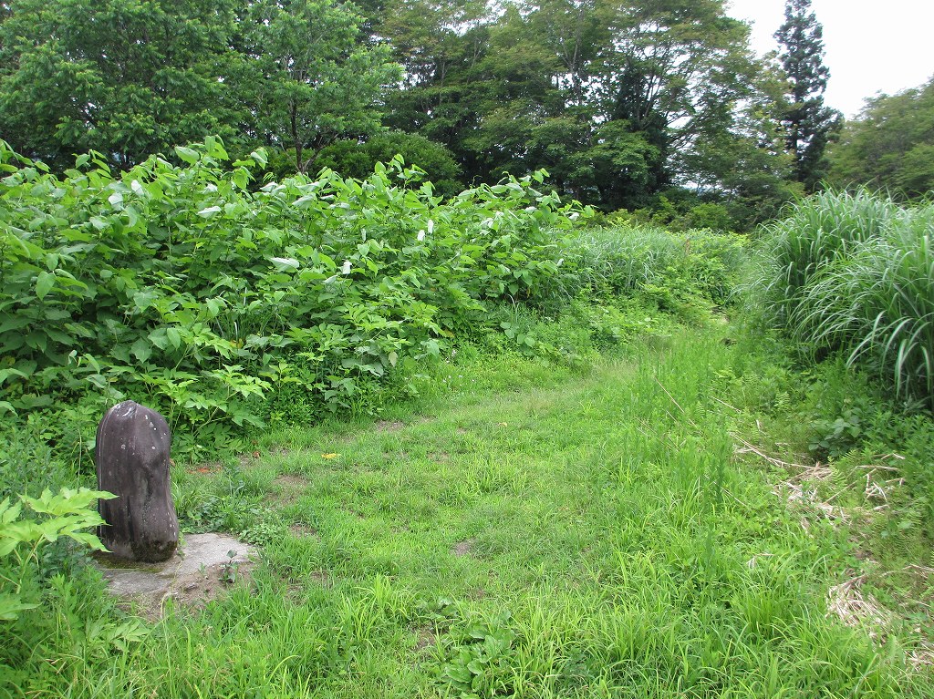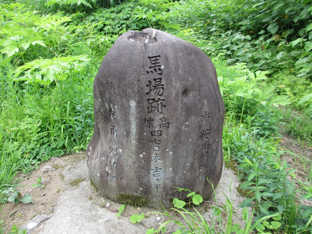 橋を渡り、平坦な道をしばらく歩くと馬場跡の石碑がある分岐点があり、ここは左に行きます。