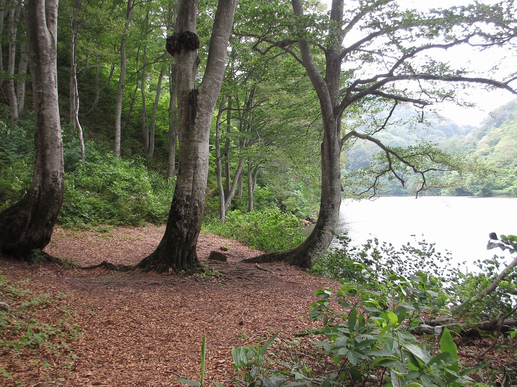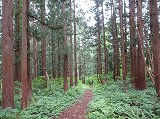 杉林を抜け、緩やかな道を登ると右手に雨生ヶ池があります。(ここまでで約30分)