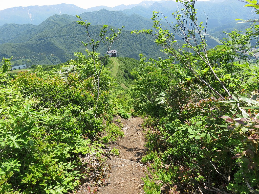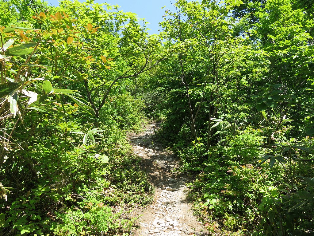 下山では、南峰分岐点では岩原方面へ向かい、次の分岐点では、登りとは違う奥添地を目指すコースへと向かいます。