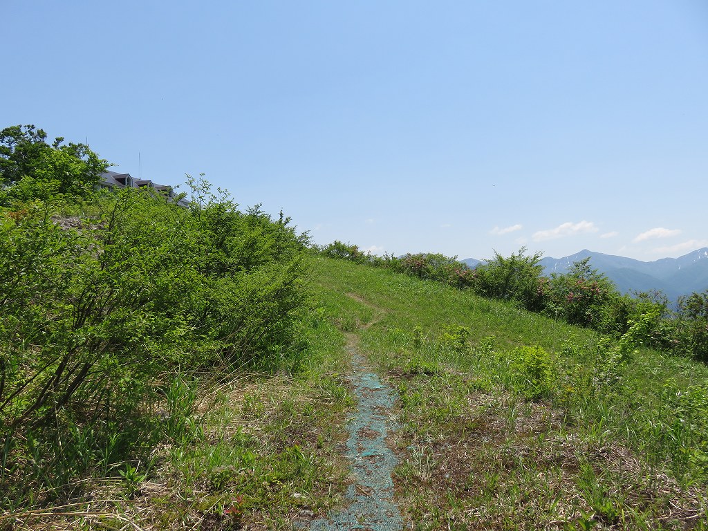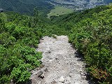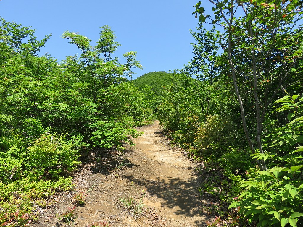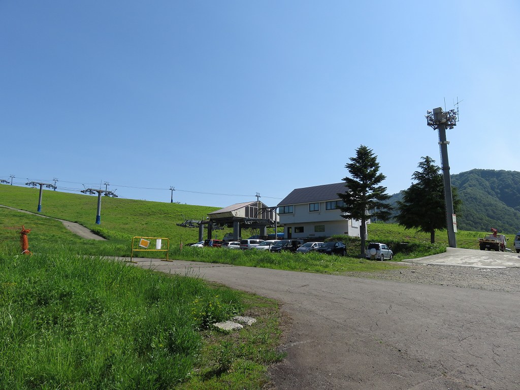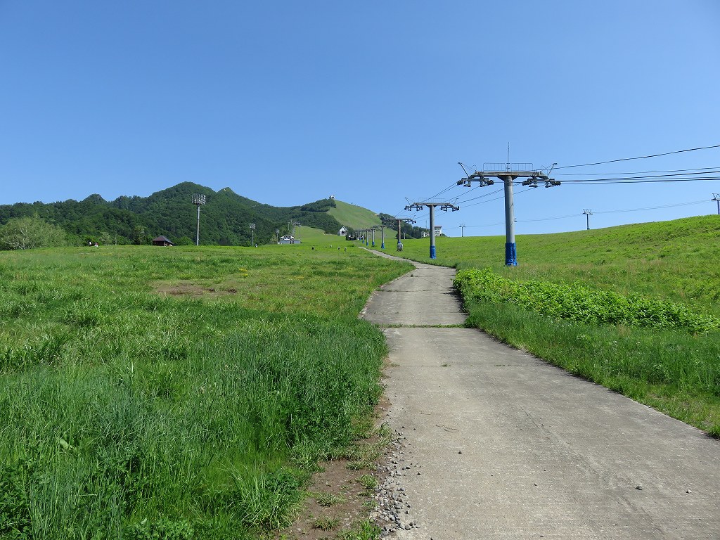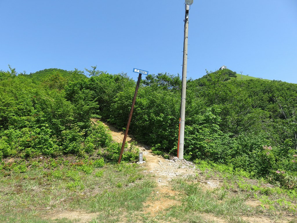 左側のリフト降り口の前に、登り口があり、そこからが登山道となります。