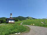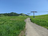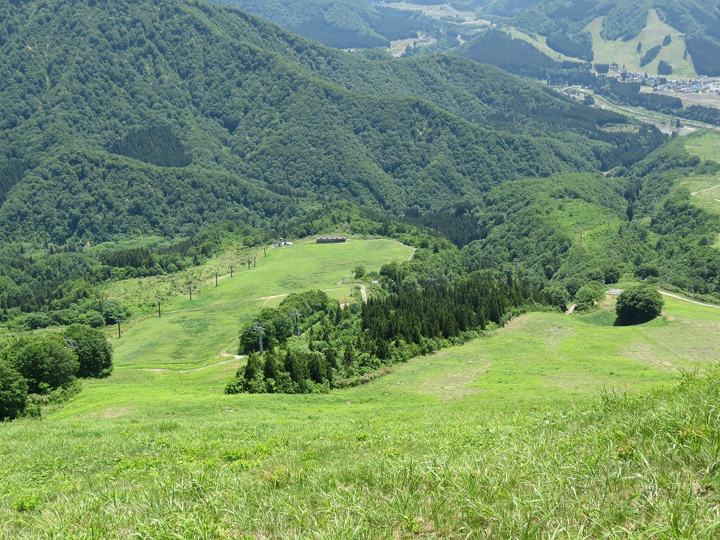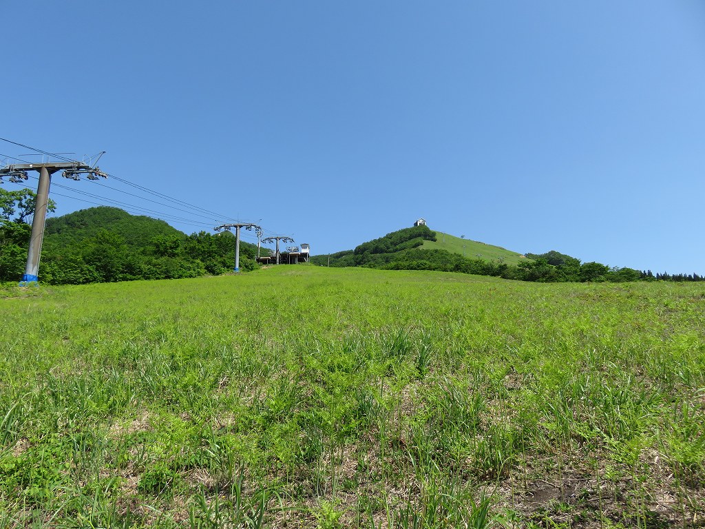 カーブなどがあるスキーのコースとなっており、道なりに進むと広いゲレンデとなるので、スタート地点に向かって降りて行きます。