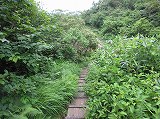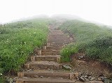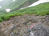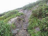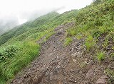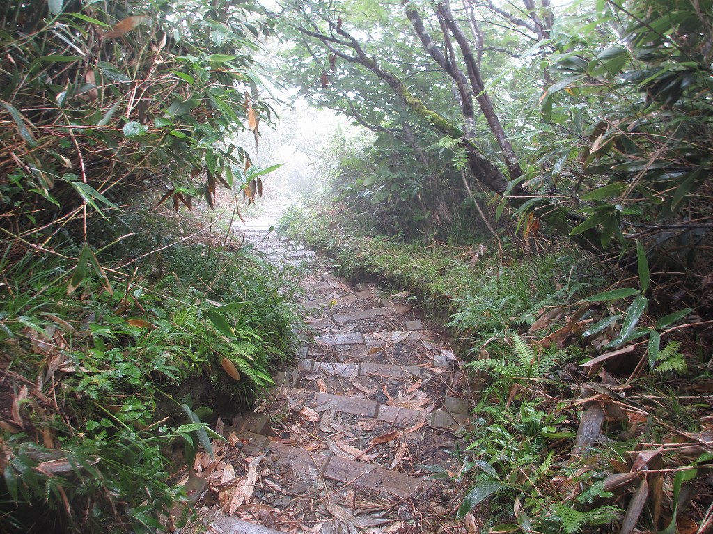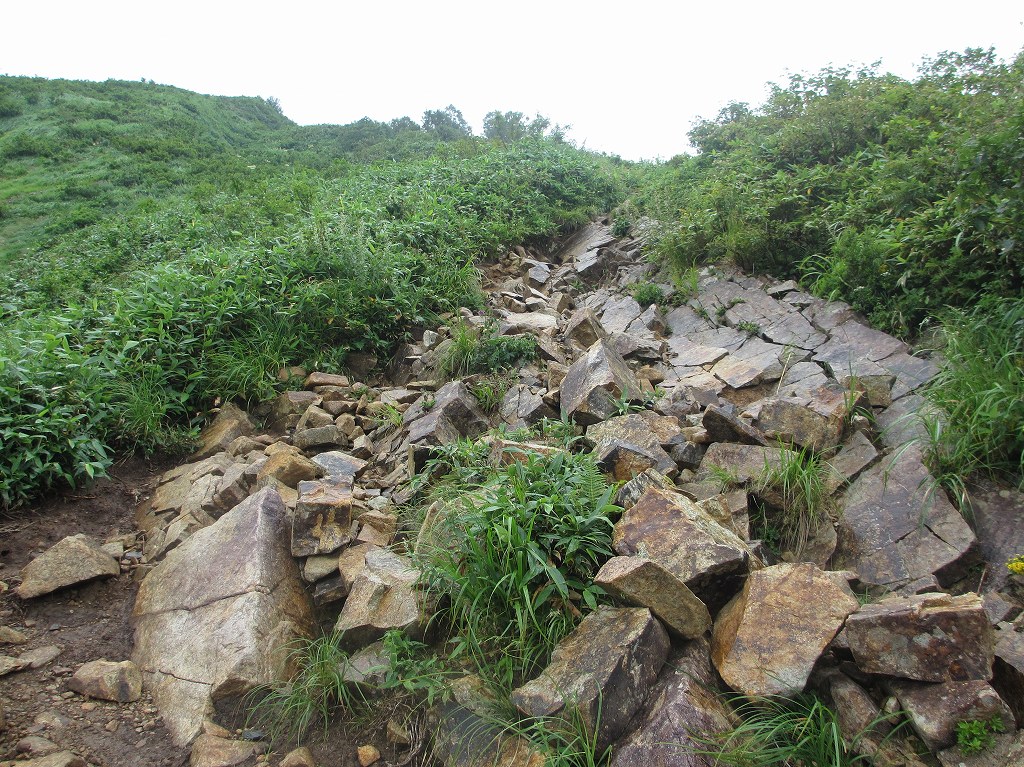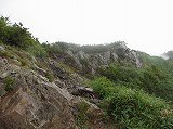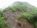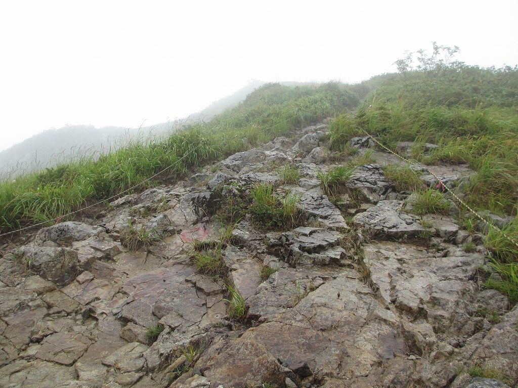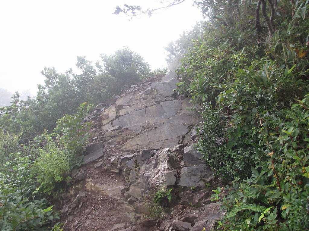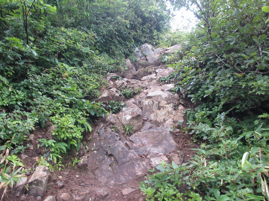 駒ノ小屋下の急斜面の岩場では、足を滑らせない様に気をつけましょう。(雨天時は特に注意が必要)