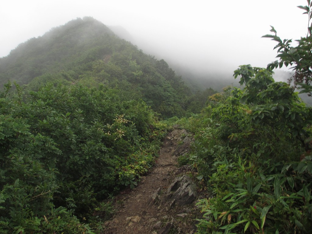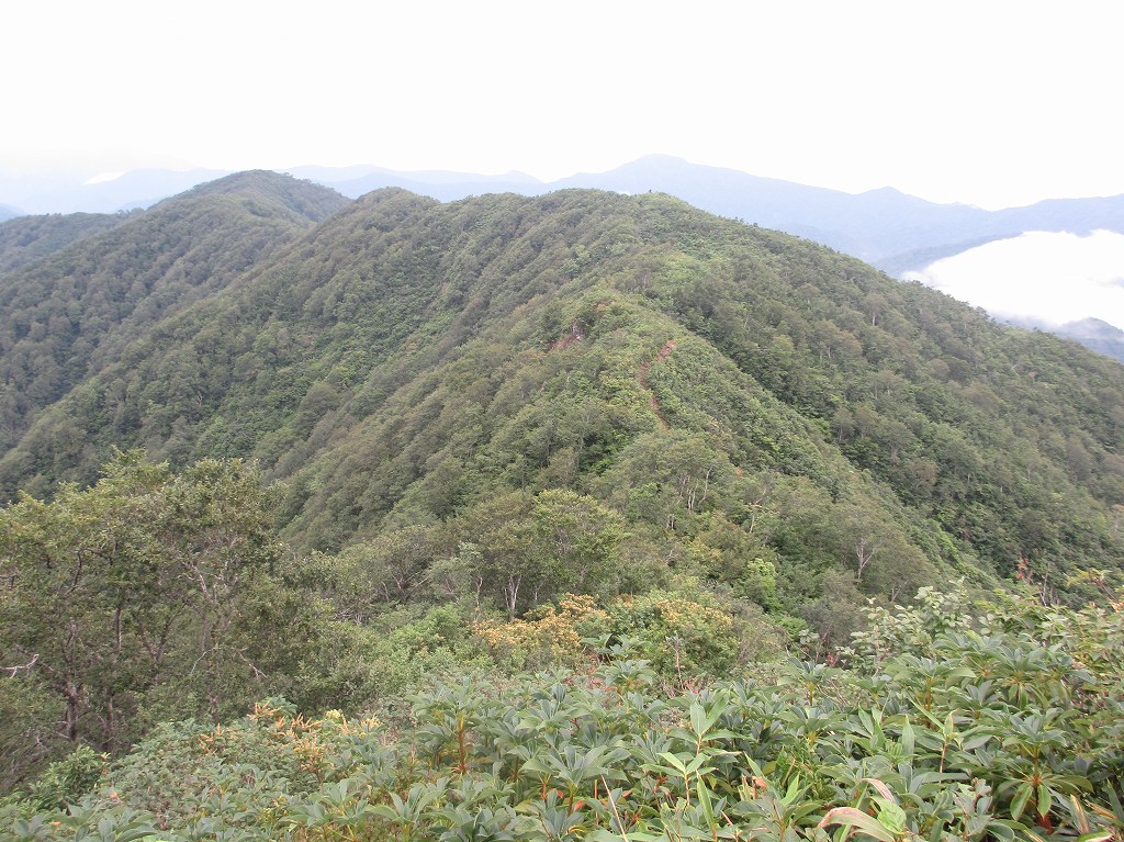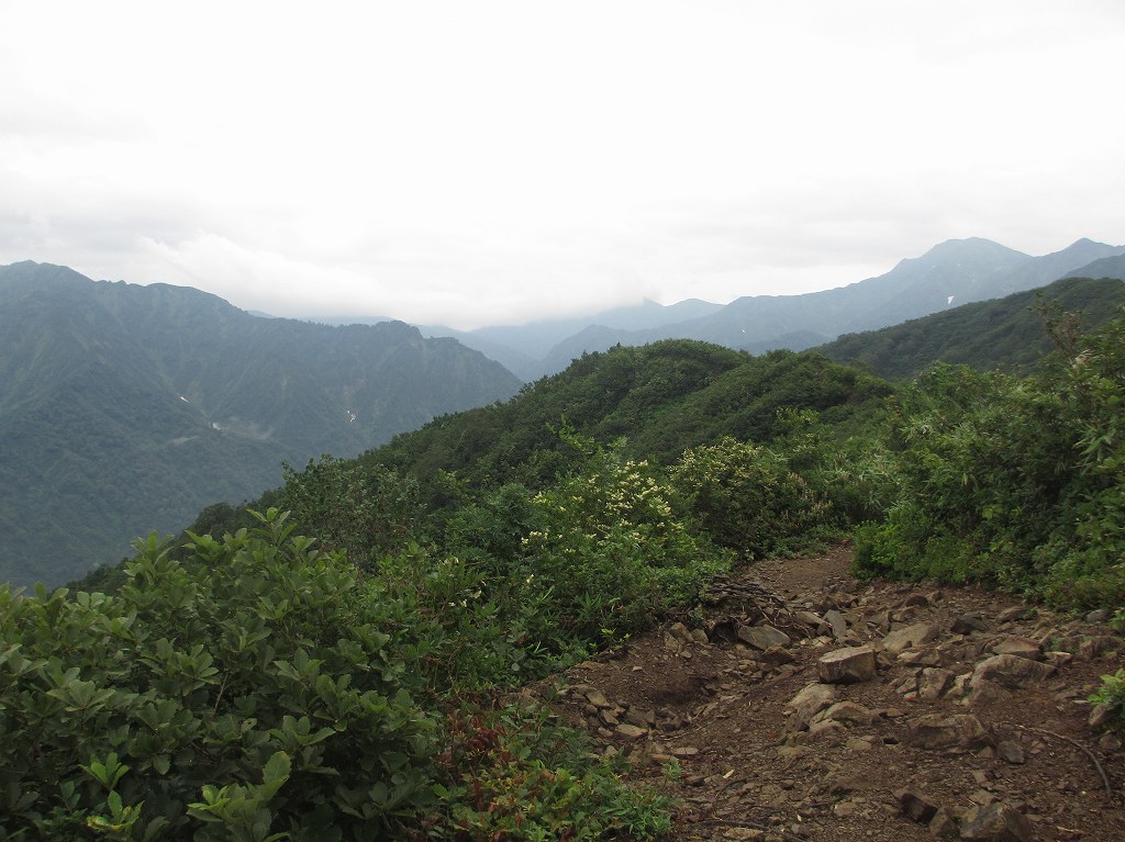 登山口からは緩やかな登りが続き、左手に荒沢岳等の広がる景色を眺めながら進みます。
