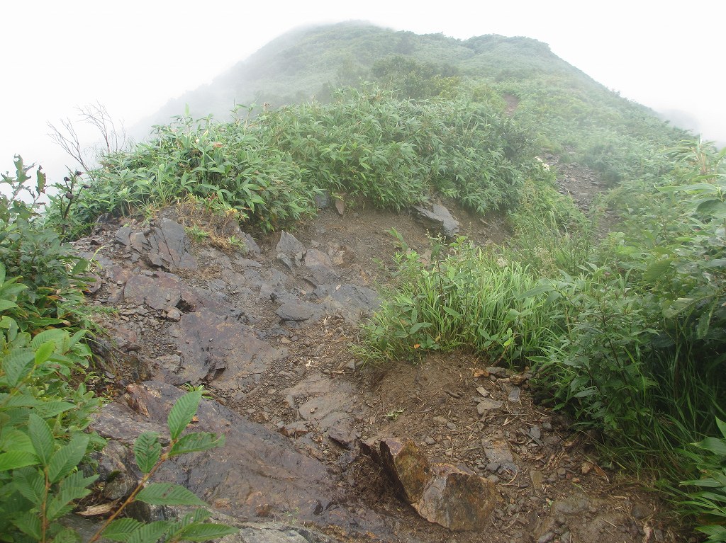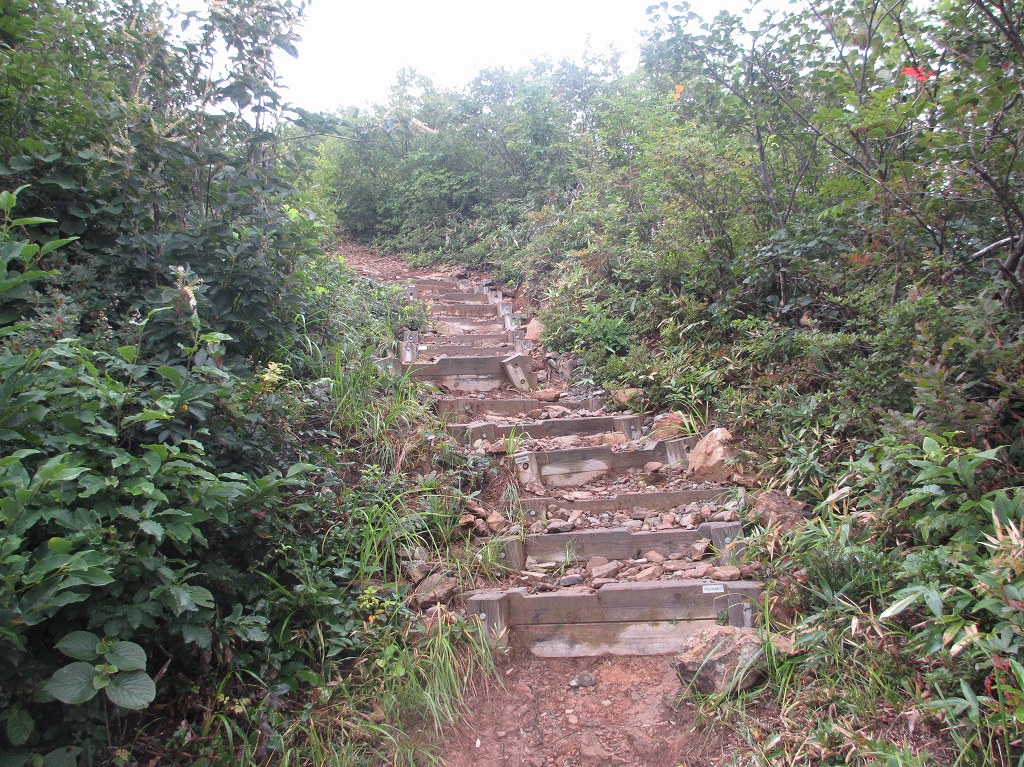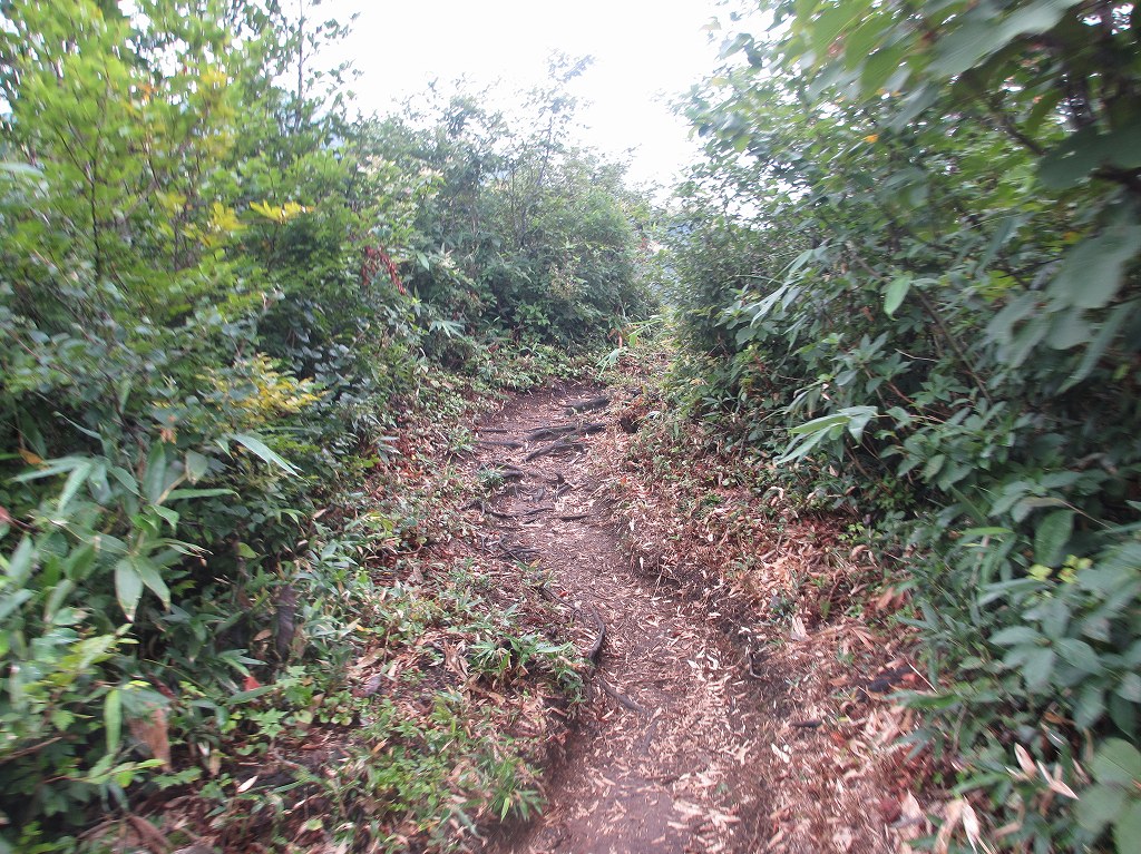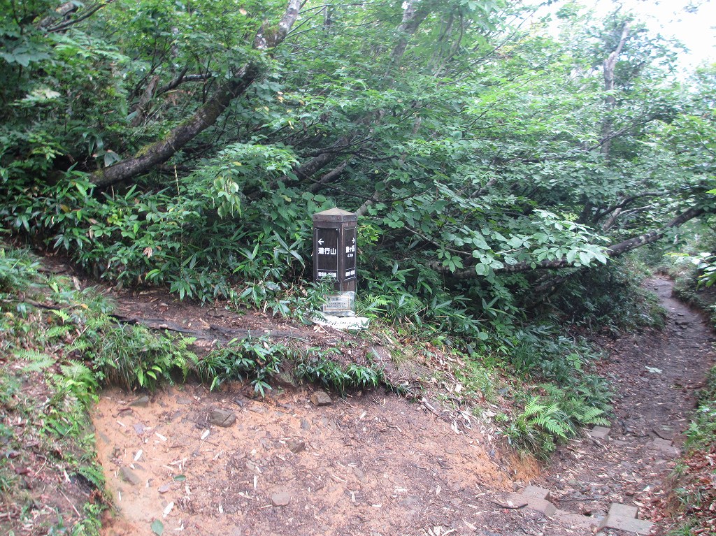 少し登ると左側に銀山平へと下る「銀の道」への分岐点があり、そこからしばらく登ると駒の湯へ向かう「銀の道」への分岐点があります。
