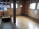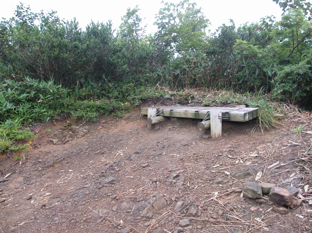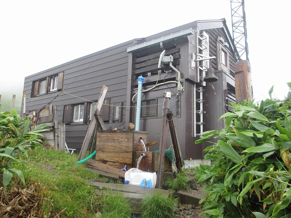 山小屋脇には水場と木製のベンチとテーブルが複数ある休憩スペースがあります。(小倉山から小屋までは約120分)