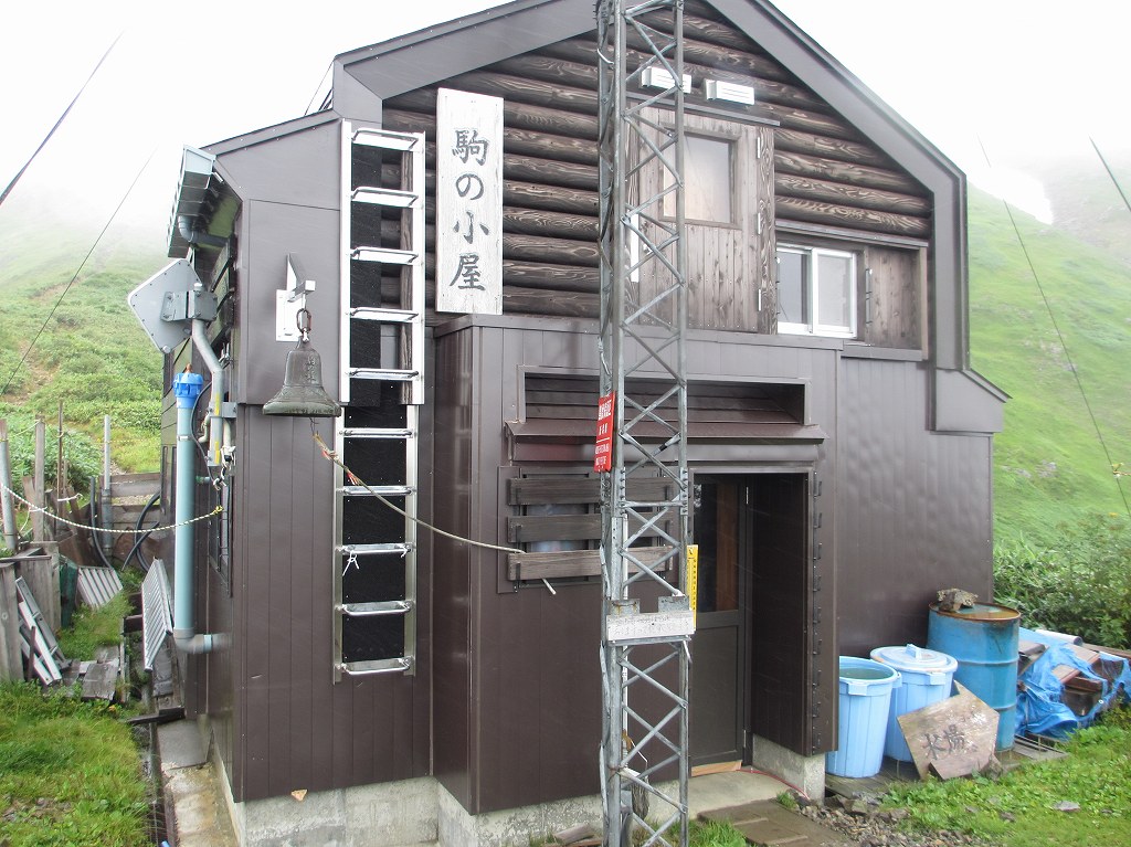 ここを慎重に登ると、山頂手前に駒ノ小屋と呼ばれる山小屋があります。