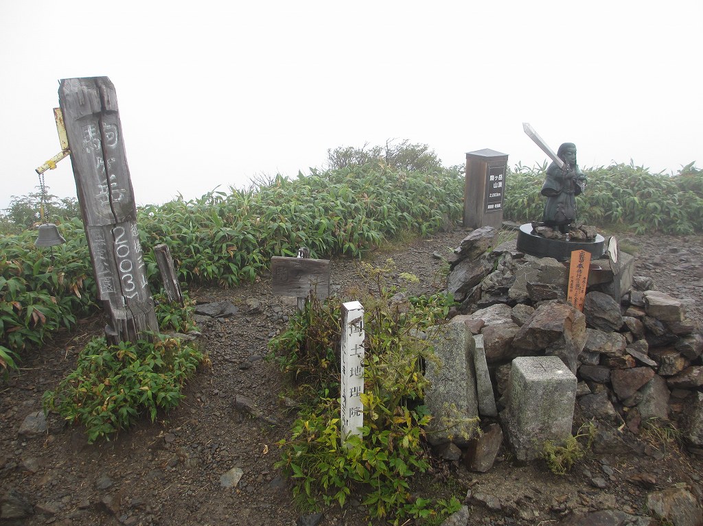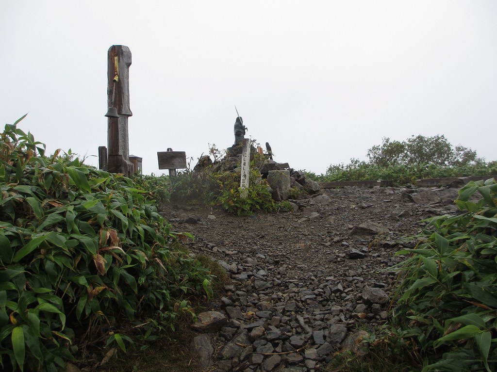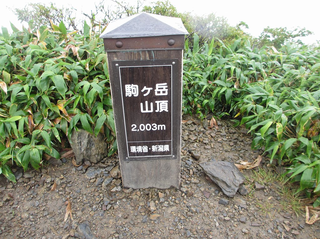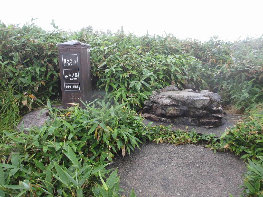 駒ノ小屋から少し登ると中ノ岳への分岐点に着き、右に行くと駒ケ岳山頂にたどり着きます。(小屋から約20分)