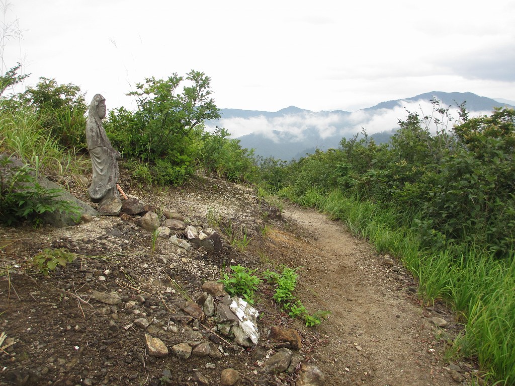 明神峠から1時間程歩くと道行山との分岐点があります。