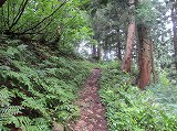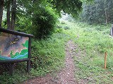 序盤は、緩やかな傾斜の遊歩道を20分程歩き、一本杉の分岐点(看板有)で左に曲がります。